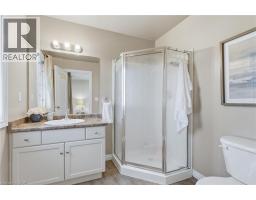Beautiful townhome with tasteful décor throughout in an amazing complex in one of the most sought-after neighbourhoods in all of Ancaster. Main floor highlights include an eat-in kitchen with high end appliances, a spacious living room area and a two piece bathroom. The upper level features a large primary bedroom with a walk-in closet and three-piece ensuite, two other good sized bedrooms, a four piece bathroom and laundry. A fully finished lower level includes a large recreation room with a full-sized window that lets in an abundance of natural light. The beautiful exterior is complimented by a large one and half car width garage, a deck and a backyard lawn that is ideal for outdoor enjoyment. Located on a quiet private road, this home is close to parks, schools, amazing amenities and the highway. AN ABSOLUTE MUST SEE! (id:46441)