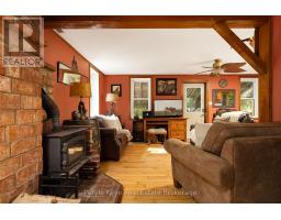 There's a certain kind of peace that can't be found within city limits. A deeper breath, a slower rhythm, a return to what matters. Set on just over 5 acres in Muskoka's countryside, this warm and welcoming two-bedroom, one-bathroom farmhouse is tucked away from the road, offering rare privacy and an invitation to live more connected, more intentionally. Located between Bracebridge and Huntsville, and only 2km to HWY 11, it's a place where modern convenience meets the timeless beauty of open fields, mature gardens, and life lived outdoors. Whether you're tending to your horses in the barn or gathering fresh eggs from the coop, this is a property that supports your homesteading dreams. Elderberry, apple, and cherry trees, along with perennial beds full of medicinal herbs and flowers, invite you to harvest, preserve, and grow with the seasons. Every inch of this land feels like a story unfolding, inviting you to breathe deeper, listen more closely, and live in sync with the natural world. Walk the garden in the mornings, harvest your own food, or simply breathe in the scent of pine and earth. From quiet trails to a private pond, open pasture to perennial beds, every part of the property invites you to tune into the seasons.This home radiates comfort and warmth. A wood stove anchors the living space perfect for curling up with a good book as the sun sets over the treetops. The open layout is simple, purposeful, and designed for connection perfect for those craving stillness, time with the people they love, and quiet moments immersed in nature. A 40' x 25' heated and insulated garage/shop is ready for hands-on projects, storage, or a creative studio space.This property isn't just about what it has, it's about how it feels. Like stepping into a world where you're connected to the land, and to the calm of nature. If you've been searching for a life with more calm, more nature, and more meaning this could be the home you've been hoping to find! (id:46441)