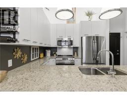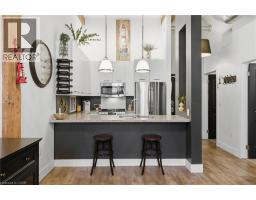 Urban living meets effortless convenience at this stylish 1-bedroom loft in the historic Blacksmith Lofts. Located on the main floor, this unique condo blends industrial character with modern comfort—perfect for retirees seeking low-maintenance living, young professionals wanting a vibrant setting, or anyone ready to downsize without compromise. Step inside to soaring ceilings, exposed brick and oversized windows that fill the space with natural light. The open-concept layout creates an inviting flow, with carpet free flooring and a generous living and dining area provides flexible space for relaxing or entertaining. The kitchen features stainless steel appliances and stone counters, making meal prep both simple and enjoyable. The private bedroom with walk-in closet offers a quiet retreat and you'll love the convenience of in-suite laundry. Main-floor access truly sets this unit apart. Skip the stairs and elevators and enjoy easy entry when coming and going, as well as added convenience for groceries, mobility needs, or quick walks to nearby amenities and the University of Waterloo School of Architecture. Two large storage mezzanine's in suite and secure bike storage on property. The building also offers a shared rooftop terrace with sweeping views of downtown Galt—a perfect spot to unwind. Surrounded by history and just steps from the thriving Gaslight District, you’ll love being close to cafés, restaurants, boutiques, Grand River walking trails and live theatre. This is downtown Cambridge living at its best! If you’ve been waiting for a loft that blends character with practicality, this one is ready to welcome you home. Contact your REALTOR® today to book your private showing. (id:46441)