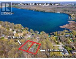 Well-cared for Chesley Lake Bungalow located in a peaceful rural neighborhood with seasonal lakeviews and water access close by this exceptional property has so much to offer. The home is situated on a 87ft x 173ft lot and *includes the adjacent 87ft x 173ft building lot*. The two lots together span over half an acre with a combined 174ft of road frontage creating plenty of options and value; keep the extra lot as it is and enjoy the privacy, build on the extra lot, or sell the extra lot and recoup some equity. The tidy bungalow is in immaculate shape and offers 3+1 bedrooms, 1.5 bathrooms, open concept kitchen/living/dining with back deck access, main floor laundry, heated garage, full basement, and a long list of noteworthy improvements, features, and bonuses. KEY IMPROVEMENTS: Roof shingles (2020), Upgraded attic insulation (2020), Windows (2021), Furnace & Central Air (2020), Propane hot water heater - owned (2020), Iron filter (2023), Kitchen appliance (2020), Washer/Dryer (2023), and Toilets (2024). ADDITIONAL FEATURES: paved driveway with plenty of parking, oversized insulated/heated single garage, 200 amp panel, drilled well, large storage room/wood room in basement, cold storage room, house wired for gas powered generator (Generator not included), Lifebreath Air Exchanger, Woodstove in basement, appliances included, large back deck with forest views, and much more. BONUS #1: Included in the sale is the adjacent 87ft x 173ft lot known as 26 Shore Drive. BONUS #2: Enjoy lake access approximately 200 meters from your doorstep where you can launch the kayaks/sups or catch a breathtaking morning sunrise over the lake. LOCATION: A picturesque setting in a central location with two vibrant Lake Huron beach towns (Southampton & Sauble Beach) just 15 mins away, and the city of Owen Sound on Georgian Bay just 25 mins away. Dont miss out on this exciting opportunity! (id:46441)