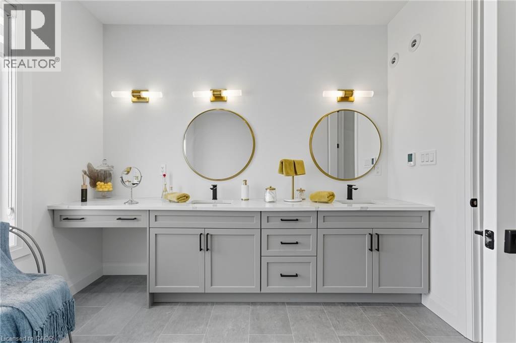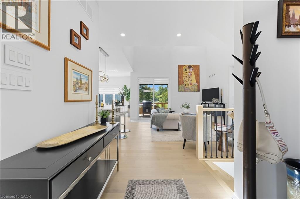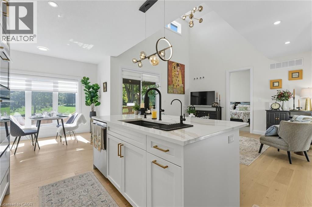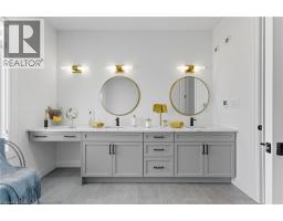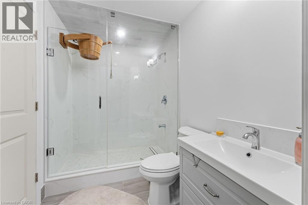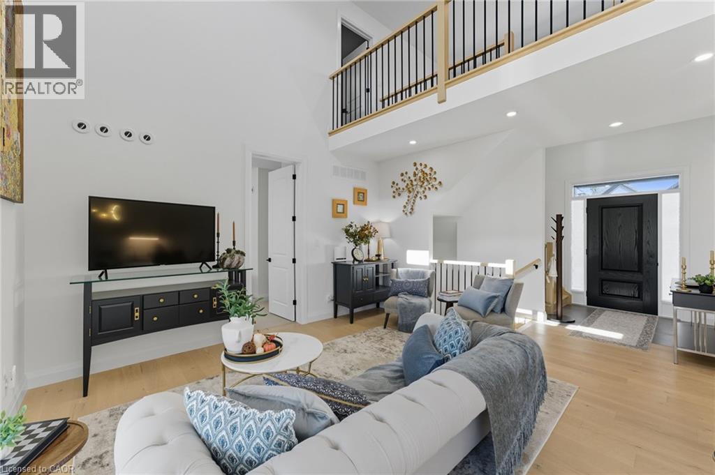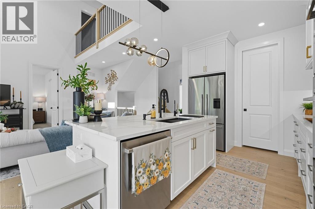 Nestled in the prestigious Lions Park Estates community of Brantford, this executive all-brick residence combines timeless sophistication with modern comfort. Perfectly positioned on a quiet cul-de-sac, this home is an ideal retreat for those seeking luxury living in a private setting. Step inside to soaring ceilings, wide-plank engineered hardwood flooring, and sun-filled open-concept living spaces designed for both everyday living and entertaining. The chef-inspired kitchen is a true showpiece, showcasing white cabinetry, quartz countertops, designer hardware, an undermount sink, a breakfast bar, and a walk-in pantry. The main floor features a serene primary suite complete with a spacious walk-in closet and a spa-like 5-piece ensuite featuring a glass shower, soaker tub, and dual vanities. A versatile office/den with garage access, powder room, and convenient laundry area complete this thoughtfully designed level. Upstairs, the loft offers two oversized bedrooms and a sleek 4-piece bathroom, providing comfort and privacy for family or guests. The partially finished lower level with soaring ceilings offers endless possibilities, already featuring a sauna and Nordic-inspired spa bathroom. Step outside to enjoy seamless indoor-outdoor living with a covered wooden deck, and a cold plunge tub—perfectly complementing the spa-like amenities of this home, perfect for year-round relaxation or entertaining. (id:46441)