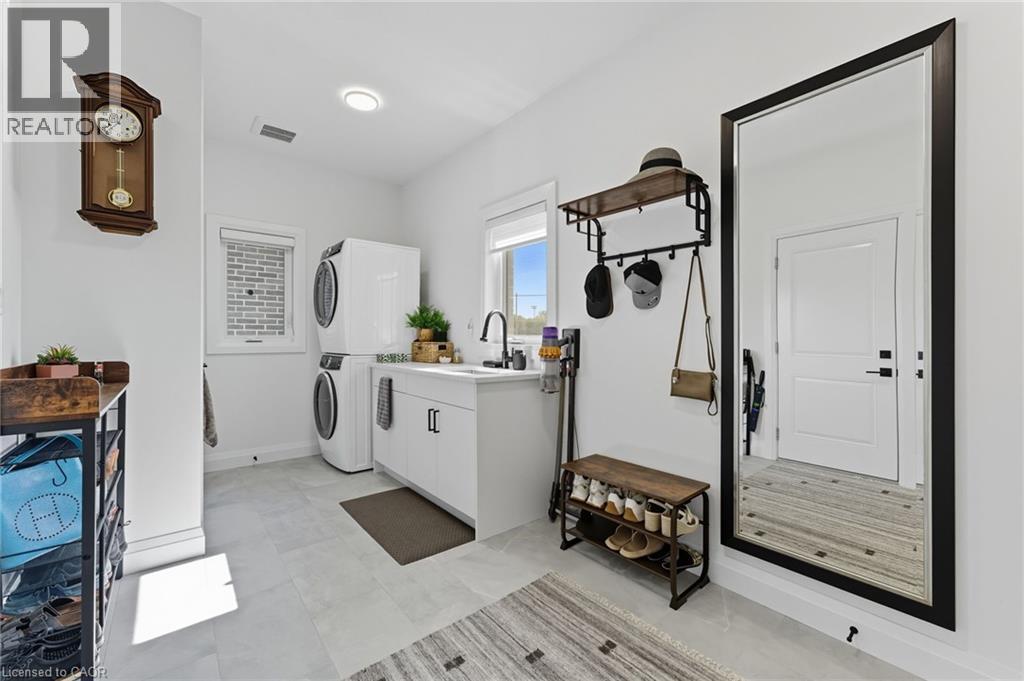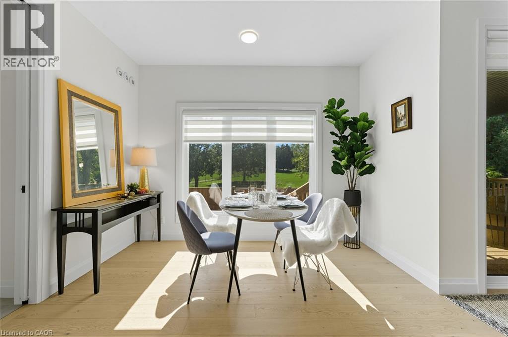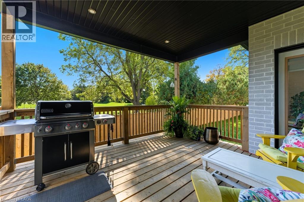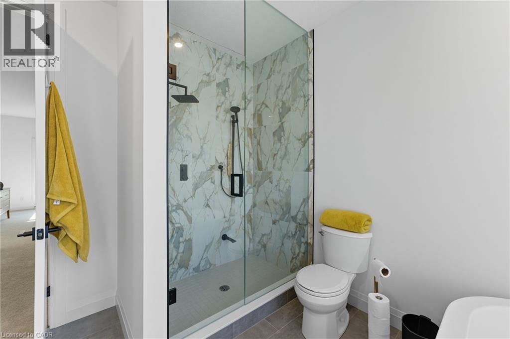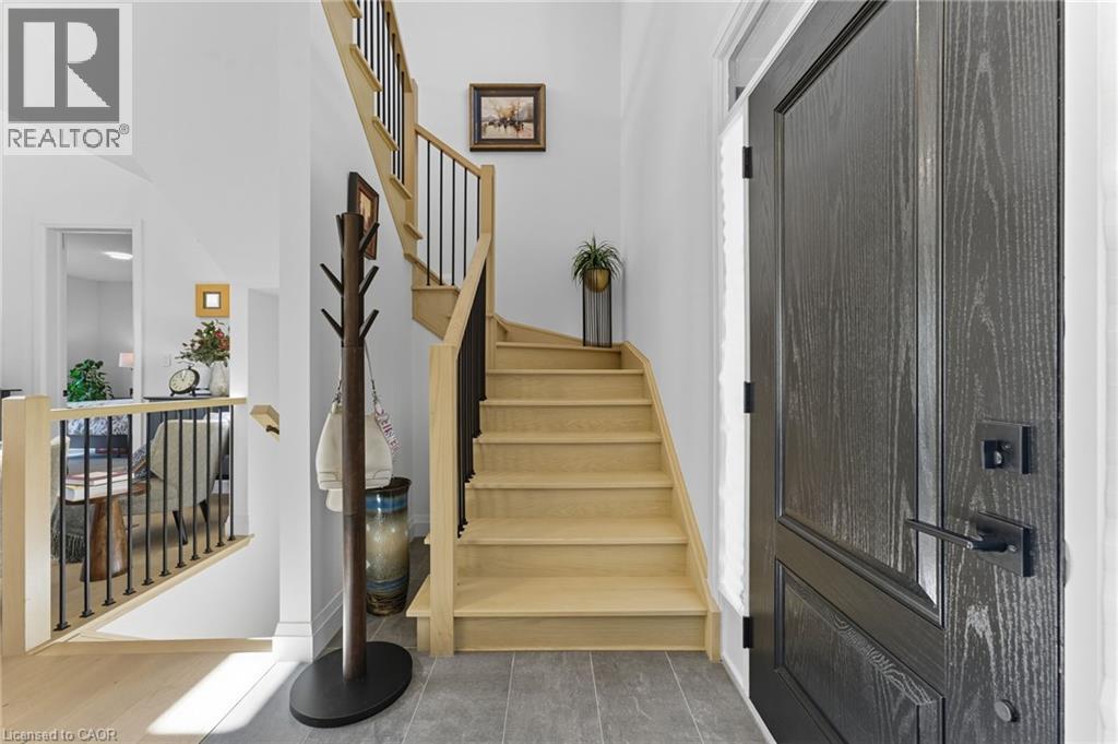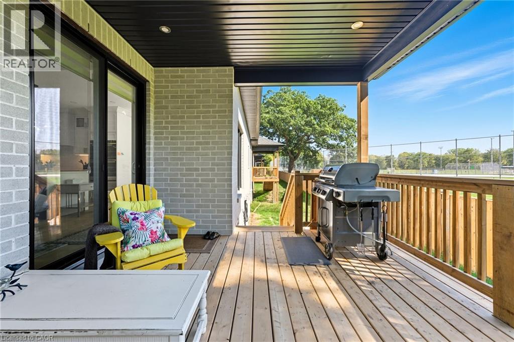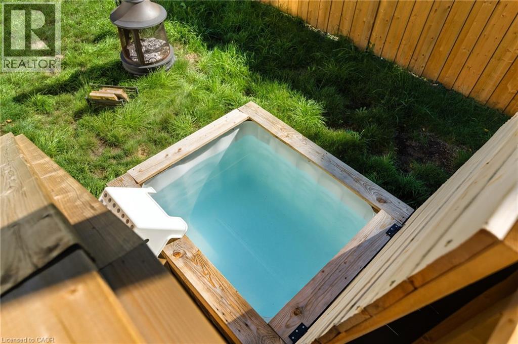 Nestled in the prestigious Lions Park Estates community of Brantford, this executive all-brick residence combines timeless sophistication with modern comfort. Perfectly positioned on a quiet cul-de-sac, this home is an ideal retreat for those seeking luxury living in a private setting. Step inside to soaring ceilings, wide-plank engineered hardwood flooring, and sun-filled open-concept living spaces designed for both everyday living and entertaining. The chef-inspired kitchen is a true showpiece, showcasing white cabinetry, quartz countertops, designer hardware, an undermount sink, a breakfast bar, and a walk-in pantry. The main floor features a serene primary suite complete with a spacious walk-in closet and a spa-like 5-piece ensuite featuring a glass shower, soaker tub, and dual vanities. A versatile office/den with garage access, powder room, and convenient laundry area complete this thoughtfully designed level. Upstairs, the loft offers two oversized bedrooms and a sleek 4-piece bathroom, providing comfort and privacy for family or guests. The partially finished lower level with soaring ceilings offers endless possibilities, already featuring a sauna and Nordic-inspired spa bathroom. Step outside to enjoy seamless indoor-outdoor living with a covered wooden deck, and a cold plunge tub—perfectly complementing the spa-like amenities of this home, perfect for year-round relaxation or entertaining. (id:46441)