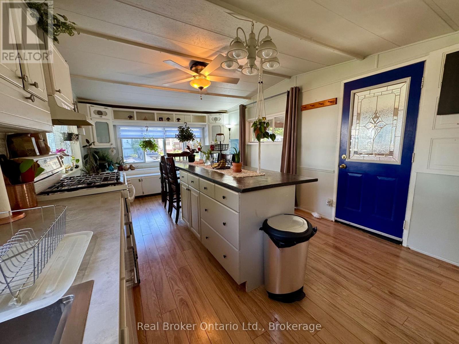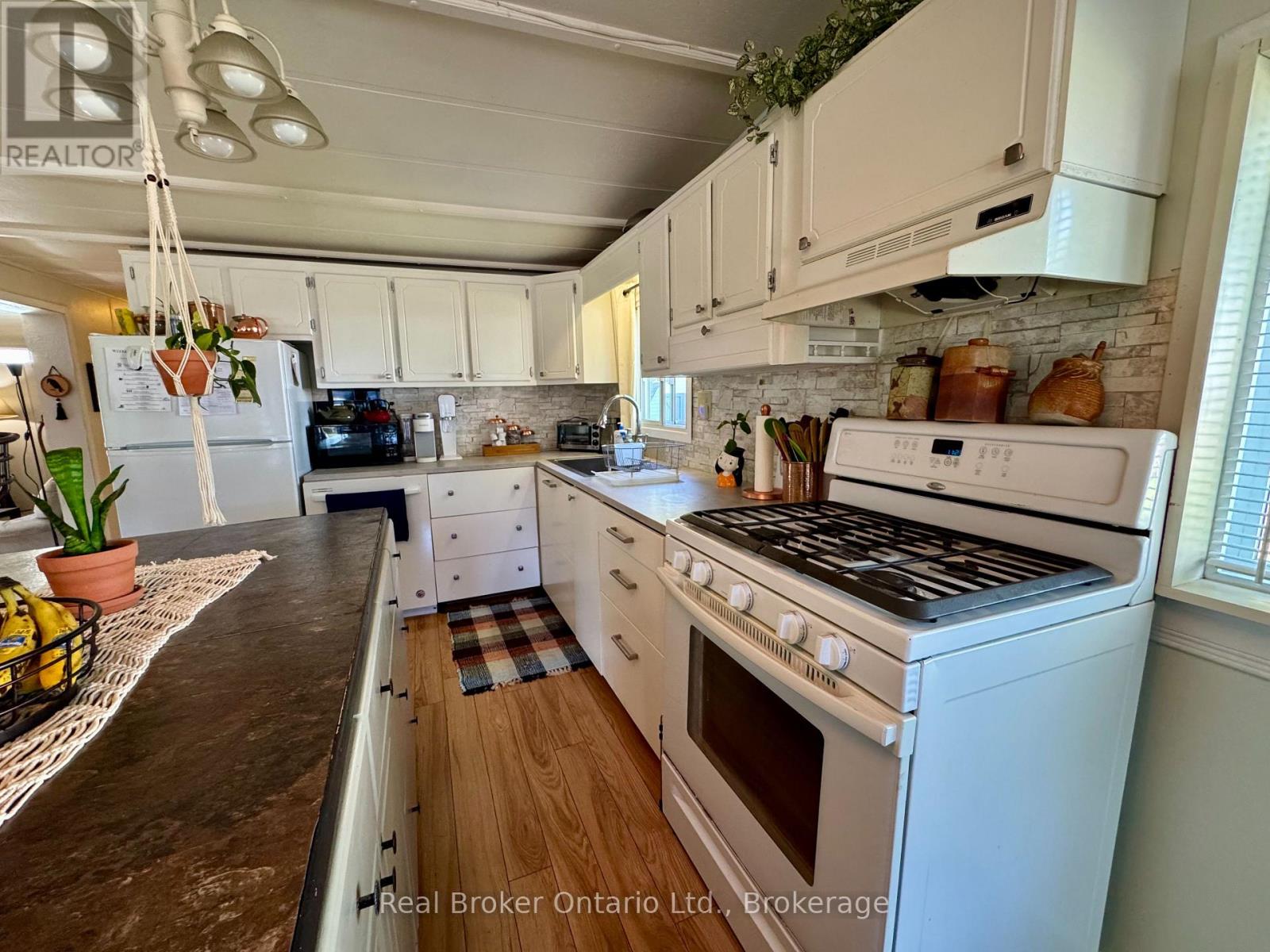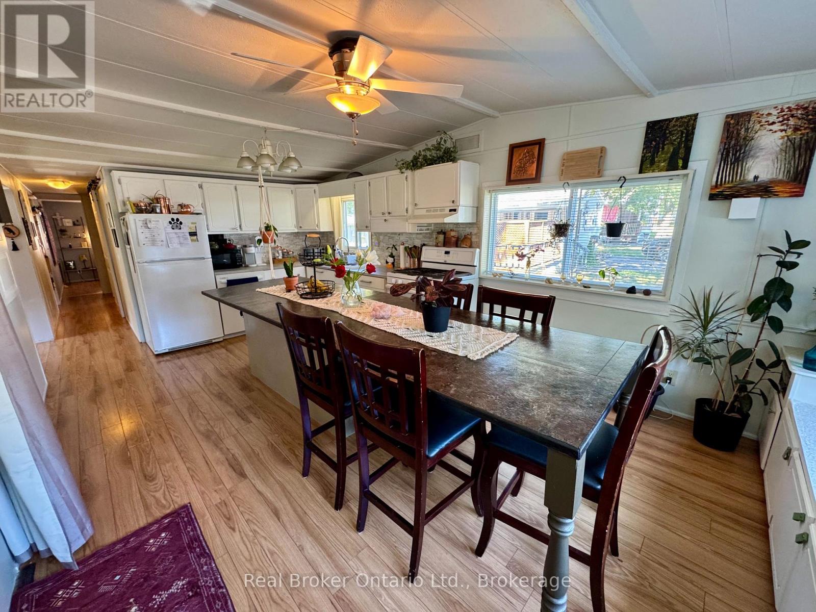 We are excited to present this incredible opportunity! A sought-after 2-bedroom trailer with 888 sq. ft. of indoor living space, a spacious addition, and many updates, including a new furnace and water heater (2023). From the moment you step inside, you'll feel the warm and welcoming atmosphere. Large windows bring in natural light, while the generous living, kitchen, and dining areas make entertaining easy. The oversized kitchen island/table provides plenty of counter space and adds to the open, inviting layout. You'll never want to leave! Outdoors, enjoy gardening or relaxing on the back patio under the 10' x 12' steel-top gazebo. Extra storage is available in the 7' x 7' shed. The park itself is exceptionally well-maintained, located beside Laurel Creek Conservation Area, and is perfect for hiking, biking, and enjoying nature. Take in sunsets over farmland while still being just minutes from shopping, St. Jacobs Farmers Market (5.1 km), and HWY 85 (5.5 km). Residents enjoy outstanding amenities: a heated pool, two hot tubs, playground, mini golf, recreation hall, games room, fishing pond, plus seasonal tractor rides and fun activities for all ages. This vibrant, friendly community offers an affordable ownership option where young and old alike feel at home. Please note: this is a seasonal 10-month park (closed in January and February), so it cannot be used as a year-round primary residence. The 2026 season park fee is $10,190 + HST, which includes water, taxes, and site fees. Hydro is billed separately in three installments per year. This is a fantastic chance to enjoy a welcoming community, wonderful amenities, and a peaceful lifestyle, while staying close to everything Waterloo has to offer. Come see this unique opportunity for yourself! (id:46441)