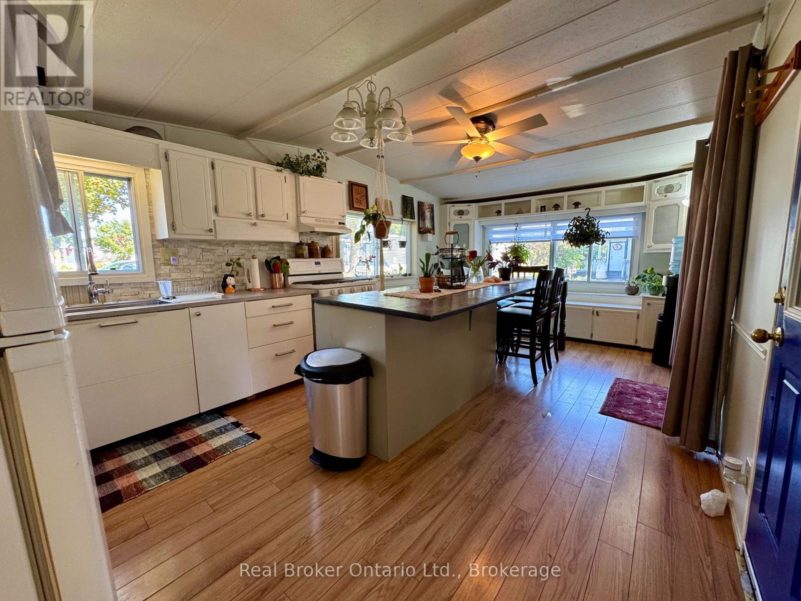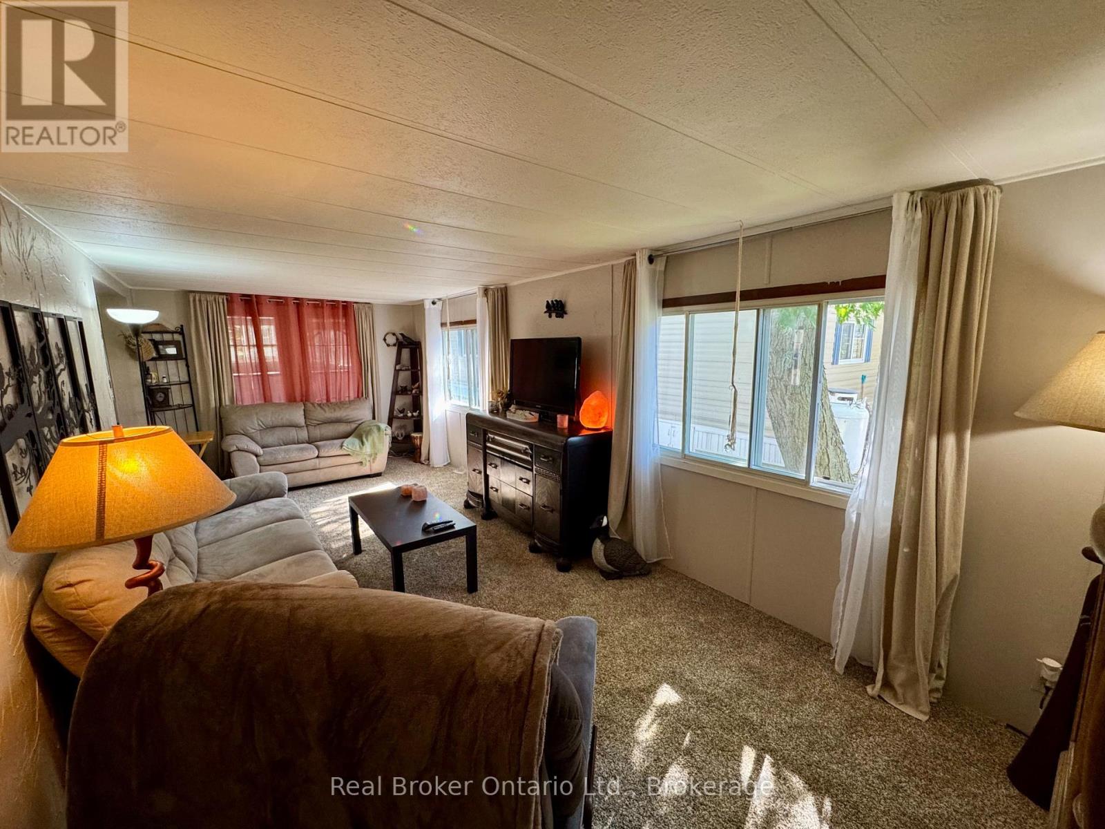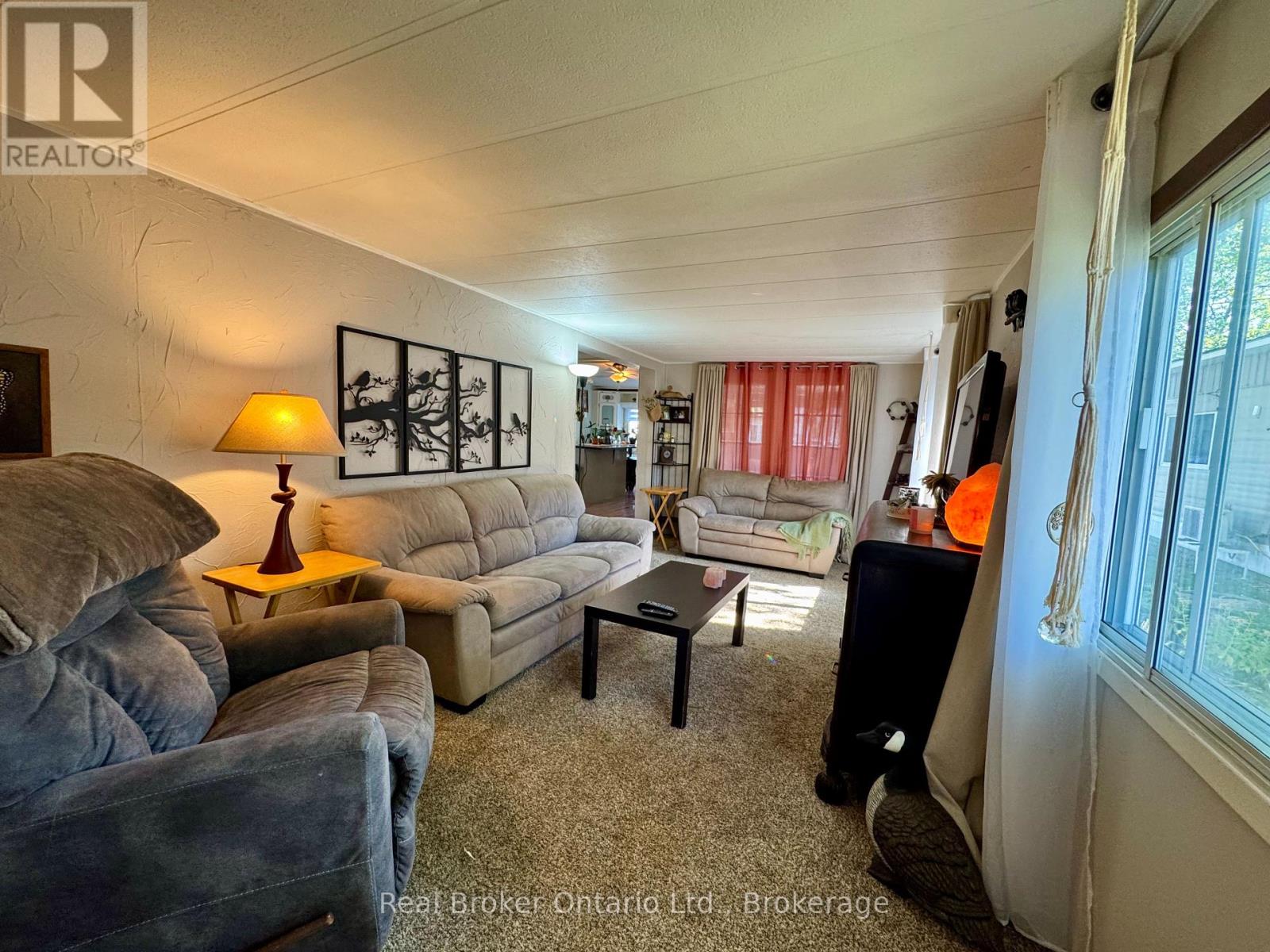 We are excited to present this incredible opportunity! A sought-after 2-bedroom trailer with 888 sq. ft. of indoor living space, a spacious addition, and many updates, including a new furnace and water heater (2023). From the moment you step inside, you'll feel the warm and welcoming atmosphere. Large windows bring in natural light, while the generous living, kitchen, and dining areas make entertaining easy. The oversized kitchen island/table provides plenty of counter space and adds to the open, inviting layout. You'll never want to leave! Outdoors, enjoy gardening or relaxing on the back patio under the 10' x 12' steel-top gazebo. Extra storage is available in the 7' x 7' shed. The park itself is exceptionally well-maintained, located beside Laurel Creek Conservation Area, and is perfect for hiking, biking, and enjoying nature. Take in sunsets over farmland while still being just minutes from shopping, St. Jacobs Farmers Market (5.1 km), and HWY 85 (5.5 km). Residents enjoy outstanding amenities: a heated pool, two hot tubs, playground, mini golf, recreation hall, games room, fishing pond, plus seasonal tractor rides and fun activities for all ages. This vibrant, friendly community offers an affordable ownership option where young and old alike feel at home. Please note: this is a seasonal 10-month park (closed in January and February), so it cannot be used as a year-round primary residence. The 2026 season park fee is $10,190 + HST, which includes water, taxes, and site fees. Hydro is billed separately in three installments per year. This is a fantastic chance to enjoy a welcoming community, wonderful amenities, and a peaceful lifestyle, while staying close to everything Waterloo has to offer. Come see this unique opportunity for yourself! (id:46441)