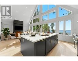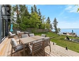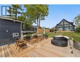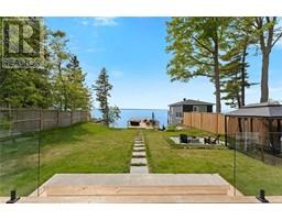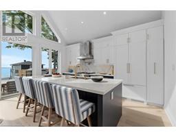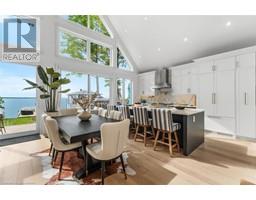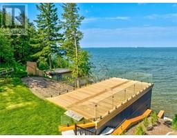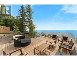 ALL BRAND-NEW FURNITURE IS INCLUDED IN THE PRICE. Don't miss out on this one-of-a-kind Custom-built Tarion warrantied waterfront property with newly constructed boathouse! Walk through the beautifully stained fiberglass front door into the spacious foyer accented by 48 porcelain tiles. The Foyer opens out to the awe-inspiring great room/kitchen combo filled with natural sunlight pouring through the floor-to-ceiling high windows. Great room boasts soaring 24ft vaulted ceiling and wood cladded ridge beam! A 3-sided 5ft Marquis fireplace dressed in Marrakesh Wall paint complements the great room. Chef's custom kitchen boasts high quality quartz counters and backsplash, high-end appliances, large 4x9ft center island, and a slide-out and a walk-in pantry. Main floor offers 2 ample sized bedrooms, laundry, spa-inspired 4pc washroom & access to garage. Principal bedroom is equipped with a luxurious 5pc ensuite, walk-in closet with French doors and custom closet organizer. The second bedroom has a 3pc ensuite. Both the bedrooms have huge custom designed glass panes offering magnificent views of the lake! Walking out of the great room 8' tall sliding doors, you are greeted with a massive deck with a diamond insignia. The deck is equipped with a built-in gas BBQ with an outdoor fridge. A set of cascading stairs takes you down to the lush back yard and second massive diamond deck. The second deck sits atop the 16'x30' dry boathouse which has a massive 11' high door and a 60-amp subpanel. The boathouse is drywalled and finished. The fully finished basement includes and entertainment room and an exercise room. Other notable highlights: electric car charger rough-in in garage, water treatment equipment, water softener, hot tub rough-in, pot lights throughout, high end Riobel plumbing fixtures, smart thermostat, alarm system (monitored option), and a camera surveillance system. (id:46441)
