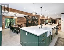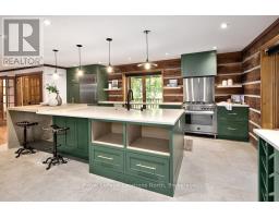 Where Rustic Beauty Meets Modern Luxury! Nestled on a quiet road and surrounded by mature trees, this fully renovated custom log home is a rare blend of rustic charm and modern luxury. Set on 1.4 acres, surrounded by forest with a southwest-facing backyard - perfect for veggie gardens and soaking in afternoon sun as it dances across the property. Steps from the Tom Thomson Trail - ideal for a peaceful evening unwind and just a 5-minute drive to the pristine waterfront at St. Vincent Park on Georgian Bay. Enjoy a true country setting, only 10 minutes to downtown Meaford and a short drive to Owen Sound for city conveniences. Every detail in this home has been thoughtfully considered. At the heart is a stunning designer kitchen in a warm earthy green, featuring top-tier appliances, smart tech, and custom cabinetry that flows seamlessly into the expansive dining room. Clever additions like integrated outlets, a charging cupboard tucked into the hidden pantry, and a second oven in the oversized island make this space both functional and beautiful. The dining room opens onto the back deck, perfect for entertaining. The living room impresses with cathedral ceilings, a dramatic statement light, and a floor-to-ceiling wood-burning stone fireplace - ideal for cozy après-ski evenings. Upstairs, the spacious primary bedroom offers a spa-like 3-piece ensuite with heated floors and custom cabinetry. Two additional bedrooms share a stylish 4-piece bath, with original hardwood floors flowing throughout the upper level. A striking metal staircase leads to the lower level - perfect for entertaining with a custom wet bar, pool table, surround sound wiring, and a sleek bathroom with heated tile floors. A fourth bedroom or home office adds flexibility. The oversized 2-car garage features heated floors, custom cabinetry, extra-tall ceilings, and a bonus second floor for a studio, gym, or storage. This is more than a home - its a lifestyle, where nature & luxury exist in perfect harmony. (id:46441)