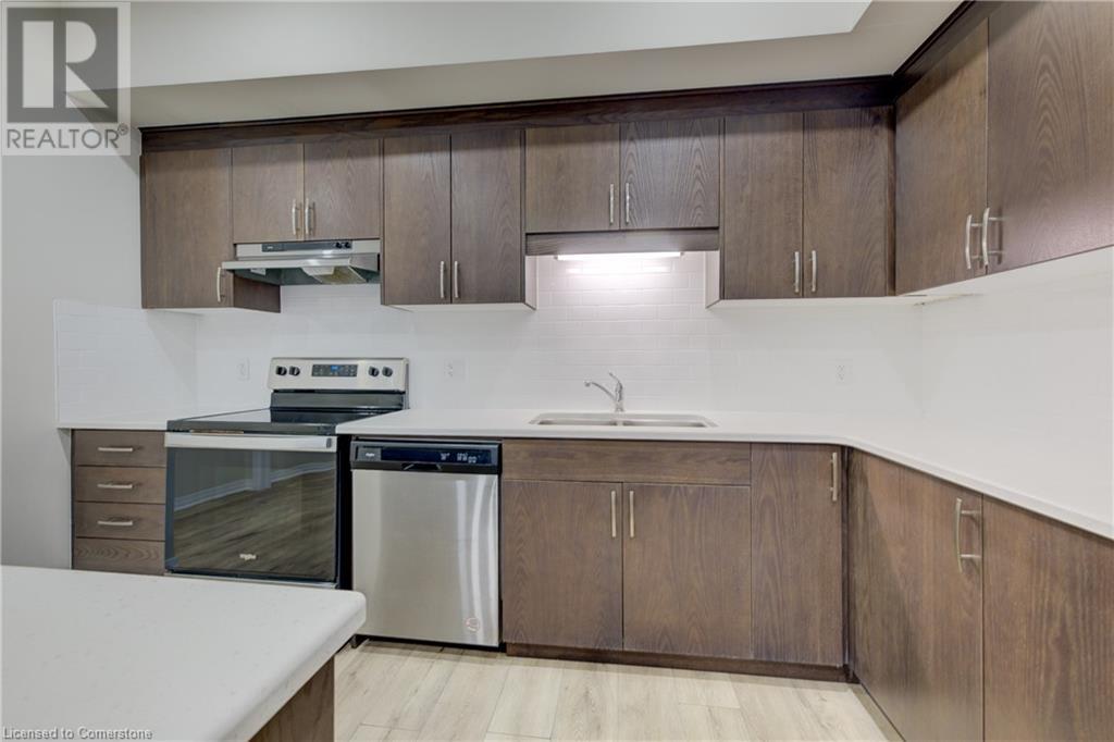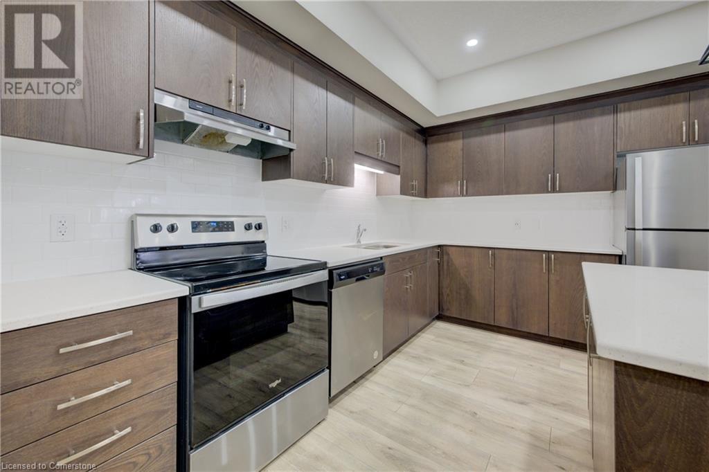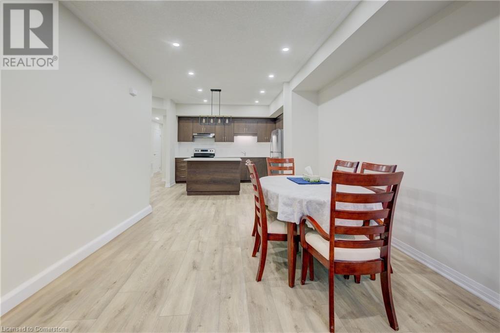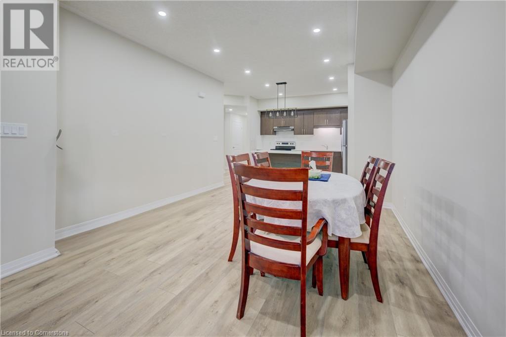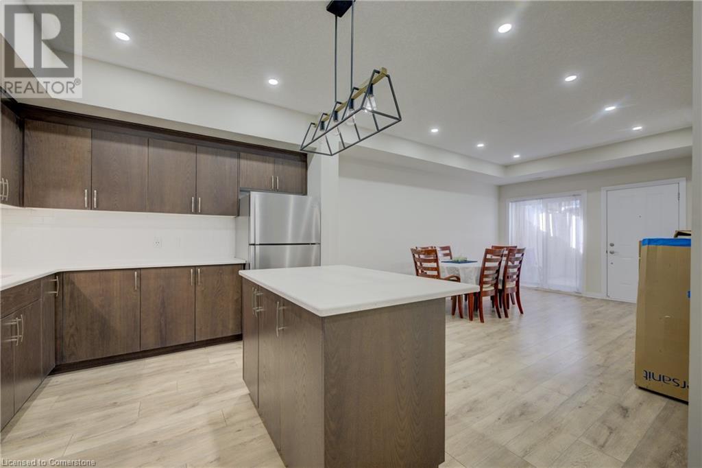 $247.13 MonthlyThis modern, upgraded end-unit townhome offers 3 spacious bedrooms, 2 full bathrooms, and 1,150 sq.ft. of thoughtfully designed living space with pot lights throughout. Located in a prime area of Cambridge, it delivers both comfort and convenience in a desirable community setting. Step into a bright, open-concept living room featuring soaring 9’ ceilings and abundant natural light, with a sliding glass door that leads to your private patio backing onto peaceful greenspace. The stylish kitchen is perfect for entertaining, equipped with a large quartz island, granite countertops, stainless steel appliances, and generous cabinet space. The primary bedroom includes a walk-in closet and a sleek ensuite bathroom with a glass shower enclosure. Two additional well-sized bedrooms, a second full 4-piece bathroom, and in-suite laundry complete the layout. This home is carpet-free throughout for easy maintenance. Extras include one parking space and 1.5 Gbps high-speed unlimited internet, all included in the affordable condo fees. Ideally situated near Cambridge Centre, excellent schools, the Grand River, Galt Country Club, downtown Cambridge, Highway 24, and just a short drive to Hwy 401 — this home is perfect for anyone seeking a low-maintenance, move-in-ready lifestyle. (id:46441)