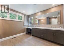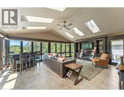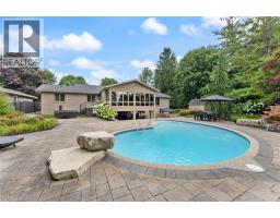 Straight out of a magazine, this architecturally stunning 3 Bedroom, 4 Bath bungalow offers over 5,000 sq ft of luxurious living space on just over half an acre with breathtaking ravine views and acres of nature. Every room exudes chic style, and the backyard oasis is a true showstopper. No expense was spared in customizing this prestigious home, blending timeless design with modern comfort. A covered front veranda with square-cut flagstone welcomes you into the Grand Foyer where exquisite craftsmanship, high-end custom cabinetry, and attention to detail are found throughout. The Living Room flows into a fabulous solarium overlooking the backyard utopia, while the chefs gourmet kitchen impresses with quartz counters, heated floors, steam oven, warming drawer, microwave drawer, and undercounter double-drawer fridge. The Primary Suite features two custom walk-in closets and a spa-like 5pc Ensuite, while the opposite wing includes two additional bedrooms, an office, 4pc bath, mudroom, and laundry. The mudroom provides custom storage and access to a double garage with epoxy flooring and a separate entrance to the basement. Downstairs, enjoy a spacious Family Room with gas fireplace and walkout, a games room, 3pc bath, and generous storage. The backyard is nothing short of spectacular with a jaw-dropping covered outdoor kitchen featuring granite counters, wet bar, full fridge, dishwasher, built-in BBQ, side burner, and gas fireplace perfect for entertaining. A sunken patio leads to the resurfaced heated concrete saltwater pool with custom fencing, while a TREX deck, hot tub, invisible fencing, and full irrigation system complete the space. The professionally landscaped grounds are surrounded by the LPRCA, ensuring lasting privacy and serenity. This chic, smart, and luxurious home was designed for easy living with every modern convenience...a rare opportunity where elegance, comfort, and nature come together. Book your private viewing today. (id:46441)