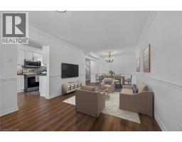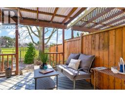 STUNNING 3 BEDROOM, 2.5 BATH, FREEHOLD TOWNHOME ON QUIET COURT backing onto Parkland. This spacious home is beautifully finished top-to-bottom. Welcoming foyer leads to gracious living room/dining room with crown moldings throughout. Fabulous kitchen with abundant cabinetry & appliances. Sliding doors from kitchen lead to serene backyard oasis with expansive covered deck, fenced yard with park & escarpment views. Large primary bedroom suite with 4-piece ensuite bath & walk-in closet. Finished lower level with electric fireplace features a large space for entertaining & relaxation. OTHER FEATURES INCLUDE: 2 1/2 baths, new central air unit 2024, all window treatments, new microwave/fan & premium flooring 2021, new garage door 2023, washer/dryer, roof shingles & furnace replaced, new dishwasher 2025. Steps to park, hospital & conveniences. This home offers a wonderful lifestyle in an idyllic setting! Some photos virtually staged. (id:46441)