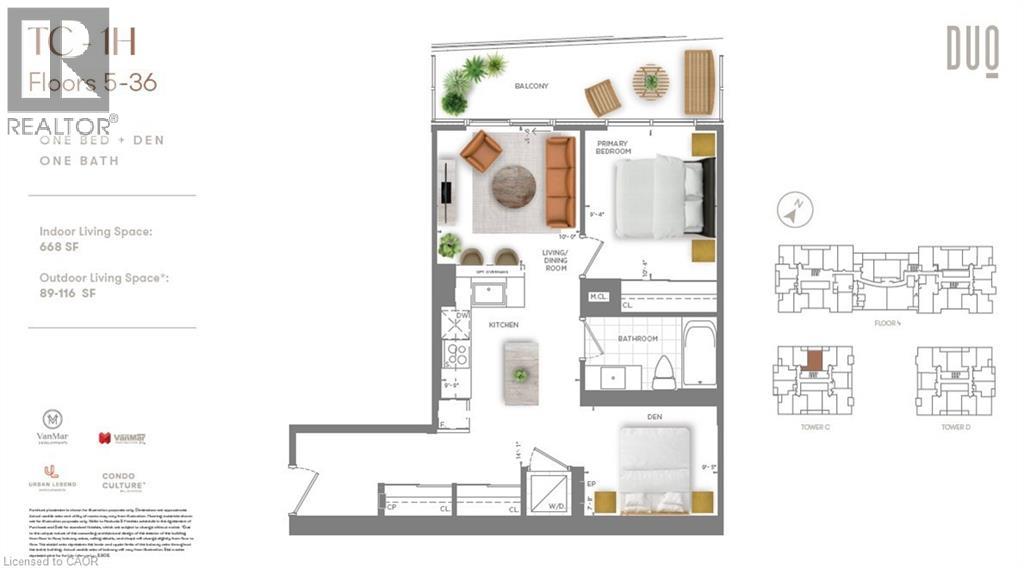 Work, play, and recharge all in one place. This 1 Bed + Den condo (668 sq. ft.) in Station Park’s newest Tower C puts you right in the middle of downtown Kitchener, a short walk from Google, close to cafés, restaurants, and the LRT. The north facing bedroom will keep you cool, perfect for restful mornings. Sip your coffee or unwind with a glass of wine on your private balcony with a gorgeous view of the city. Inside the unit has an open layout which flows easily, and the den can be used as a home office, creative corner, or a second bedroom. When you’re ready for fresh air, head up to the outdoor amenity deck, your backyard in the sky! Stretch out on the yoga platform, try a lawn game on the turf, jog the track, or join friends at the table tennis court. Here, it’s not just about living downtown, it’s about living well. Book your showing today! (id:46441)
