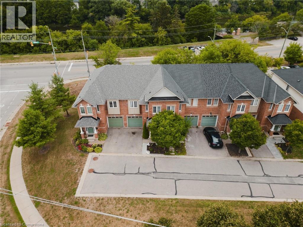 CAREFREE LIVING!! This immaculate townhome is in move in condition and features an updated eat in kitchen with quartz counter tops. Spacious living room with hand scrapped hardwood flooring. The second floor does not dissapoint featuring an updated staircase with new handrails and railings. Spacious primary bedroom with a large 4 piece ensuite and a walk-in closet. Upstairs den/office area. The basement is a full walkout and features another great living room with large windows and sliding glass doors that lead to the private backyard. Winter views of the grand river plus centrally located close to all amenities. Put this one on your list of must see homes! (id:46441)