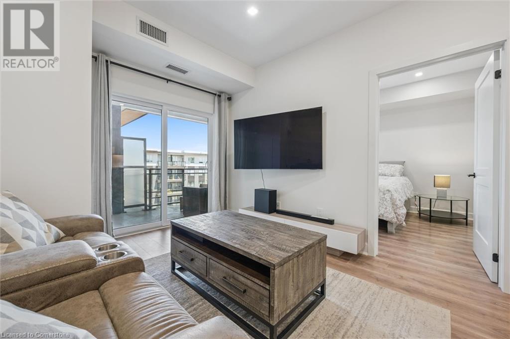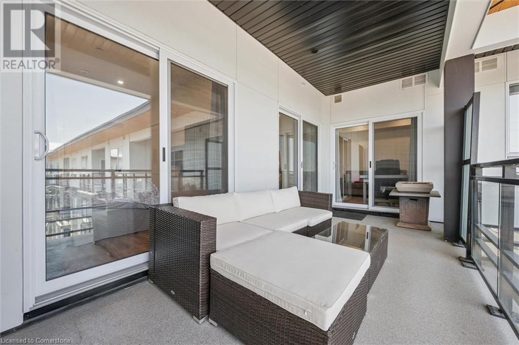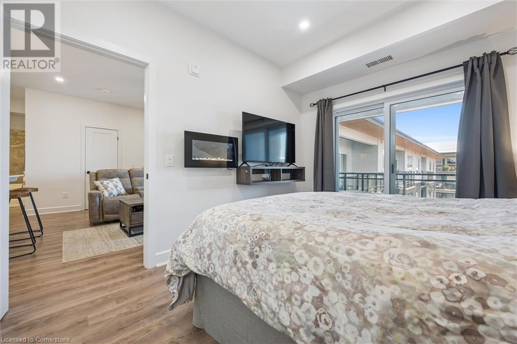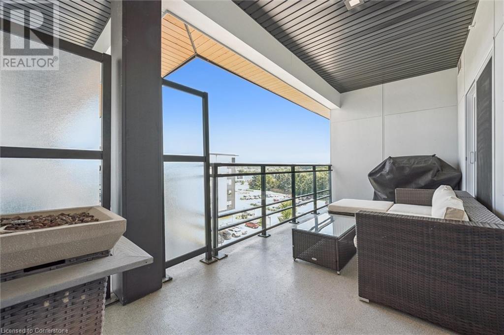 Welcome to Unit 609 at Blackstone Condominiums, where modern design meets everyday convenience. As a top floor unit you enjoy peace and quiet with no overhead noise from the neighbours. This two-bedroom, two-bath home features an open-concept layout with a sleek kitchen boasting quartz countertops, stainless steel appliances, and a functional island overlooking a bright living area. The primary suite offers a private ensuite and direct balcony access, while the second bedroom provides flexibility for guests or a dedicated home office, also opening onto the oversized balcony that connects all three main living spaces. Perfect for morning coffee, evening dining, or simply enjoying the outdoors, this extended outdoor area adds an element of space rarely found in condo living. Residents at Blackstone enjoy premium amenities, including an exercise room, games and media rooms, a party room, rooftop deck, and landscaped garden. Located just minutes from Conestoga Mall, the ION LRT, RIM Park, and the scenic Walter Bean Trail, with shopping, cafés, and restaurants right outside your door, this unit delivers a complete lifestyle package. Ideal for professionals, downsizers, or investors seeking a prime Waterloo location with standout features. (id:46441)