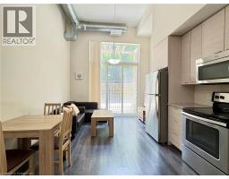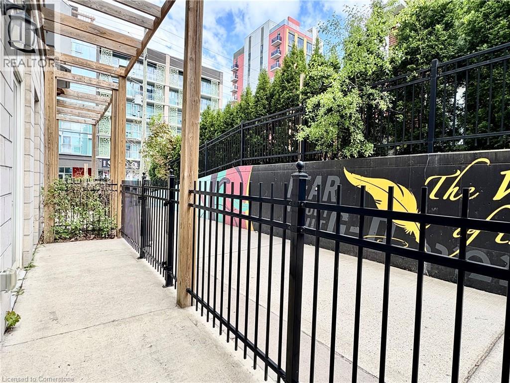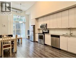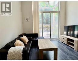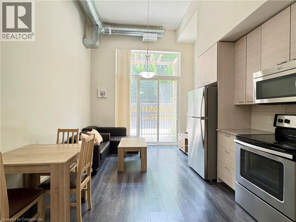 This well-appointed main-floor condominium offers 1 BEDROOM + 1 DEN, 1.5 BATHROOM, features a PRIVATE TERRACE and impressive 13-foot ceilings, complemented by modern, high-quality finishes throughout. Situated in a quiet end-unit location. The spacious open-concept layout includes a contemporary kitchen equipped with granite countertops, stainless steel appliances, and comes fully furnished, including a television and in-suite laundry for optimal convenience. Residents benefit from access to a rooftop terrace, perfect for social gatherings or unwinding. Conveniently located within walking distance to both Wilfrid Laurier University and the University of Waterloo, and with public transit and essential amenities nearby, this property presents an exceptional opportunity for young professionals, students, or investors. (id:46441)