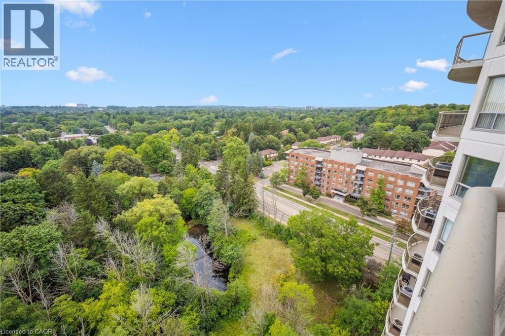 $986.09 MonthlyAmazing opportunity for condo living without sacrificing private outdoor space! Large, beautifully appointed 2+1 bedroom sub-penthouse featuring your own HUGE private exclusive terrace AND a standard second balcony for beautiful views in two directions. Incredible views of treetops, Clair Creek and the city await you from this corner unit with a ton of natural light. Modern, carpet free home. Two updated bathrooms. Open concept living area with granite countertops in the Kitchen and engineered hardwood flooring throughout. In suite laundry. TWO parking spaces, one underground. Amazing access to Uptown Waterloo, Highways, Schools and Shopping. You won't find anything else like this on the market today. Don't get stuck in a box in the sky, come see your new home! (id:46441)