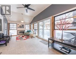 Sought after sunlit and spacious 3 bedroom, 2 bathroom recreational residence is an ideal home or cottage nestled in the heart of desirable Hidden Valley community. Ski to the hill or stroll to the fabulous 300'+ beachfront on prestigious Pen Lake with a private park featuring beach volleyball, bathroom, picnic tables, space to play or lounge as part of your membership in the Hidden Valley Property Owners Association. This residence offers an attached double car garage, such a bonus for your lifestyle and hard to find in Hidden Valley. Updated gourmet kitchen features large center eating island, gas stove, and all updated appliances in the beautiful open concept main living area with beautiful Muskoka stone gas fireplace to give the space a rustic and cozy feel while up to the minute decor surrounds you! Walk out from the main living area to your quintessential sunlit and spacious 3 season Muskoka room with another fireplace to take the chill out of those cool evenings. From there, stroll to your massive entertaining deck for bbqing, private dining, entertaining, sun bathing...your fabulous new life, you decide. 3 bedrooms on main level gives good privacy for sleeping from living areas. The lower level does not feel like a basement with a walk out door to your side yard. Great spot for an in law suite or family area with a 3rd gas fireplace and 4 pc bathroom. Privately set back from the quiet street with a level double driveway, ample for you and your guests. The shingles are new in 2022. Municipal water is also a bonus. (id:46441)