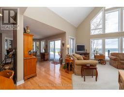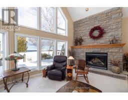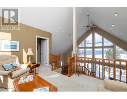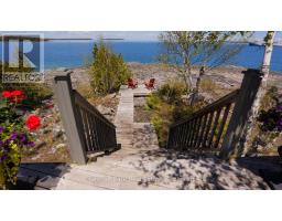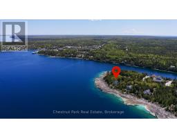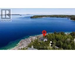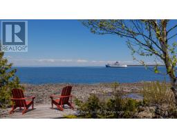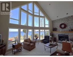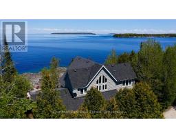 Nestled on a private triple-wide waterfront property, this custom-built Viceroy home offers an unparalleled living experience with breathtaking panoramic views where Lake Huron meets Georgian Bay. The sparkling turquoise waters stretch out before you, with stunning vistas of nearby islands and the iconic Big Tub Lighthouse just around the corner. A winding driveway leads you to your own serene sanctuary, surrounded by natural beauty and seclusion. Step outside to a spacious, wraparound deck, perfect for relaxing or entertaining while soaking in the stunning landscape. Inside, the grand foyer welcomes you into the heart of the home--a spectacular great room featuring soaring 24' vaulted ceilings and a wall of windows that flood the space with natural light and offer endless ocean-like views. A striking floor-to-ceiling stone fireplace creates a cozy focal point, ideal for gathering with loved ones. The large, well-appointed kitchen boasts abundant counter space and a central island, making it a dream for both cooking and socializing. The adjacent dining area, with patio doors leading to the waterside deck, provides the perfect setting for entertaining family and friends. The main floor also features a grand master suite with a spacious ensuite bathroom, offering a tranquil retreat with private waterfront views. Upstairs, an open staircase leads to two additional bedrooms, a four-piece bathroom, and a loft or den area, where you can unwind while overlooking the expansive great room below and the mesmerizing waterfront vistas. A 24 x 28' detached garage offers ample space for vehicles and storage, with a finished loft above ideal for guest overflow or a private retreat. The property is beautifully landscaped, blending harmoniously with its stunning natural surroundings, making this home the ultimate lakeside getaway. (id:46441)