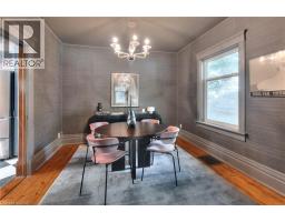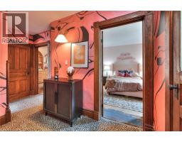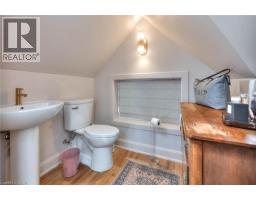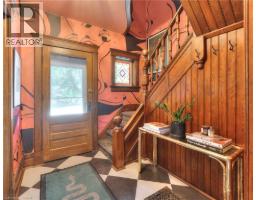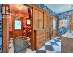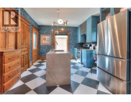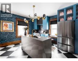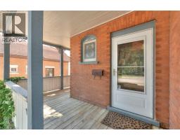 Welcome to 26 Arthur Street N, a striking century home where timeless red brick and original woodwork meet bold, modern design. Set on a tree-lined street in charming Elmira, this property offers unmatched character and convenience, just steps from the Kissing Bridge Trail, Downtown shops, schools, parks, the Woolwich Memorial Centre, and easy highway access for commuters. From the gabled roofline to the inviting wraparound porch and second-storey balcony, the home’s curb appeal is undeniable. Mature trees, manicured shrubs, and a private driveway add to the charm. Inside, the spacious foyer sets the tone with warm wood detailing, stained glass windows, and a dramatic staircase. The main floor flows seamlessly through beautifully styled living and dining spaces — featuring rich trim, original pocket doors, and designer wallpaper that balance historic character with a modern touch. The renovated kitchen is a showpiece; checkerboard flooring, quartz waterfall island, sleek blue cabinetry with brass hardware, and stainless steel appliances create a bold yet functional hub for daily living. Upstairs, you’ll find three comfortable bedrooms, each with its own unique personality, along with a renovated four-piece bathroom. The versatile layout offers space for bedrooms, nursery, or a home office. A recently finished attic provides a quiet retreat complete with its own bathroom, perfect as a primary suite, studio, or hideaway. The basement includes walk-out access to the backyard, ample storage, and room for a workshop. Outside, the deep yard offers privacy thanks to mature trees and no rear neighbours — a serene setting for summer evenings or family play. Recent updates include the kitchen, bathrooms, roof, windows, electrical, furnace, and AC — ensuring peace of mind while preserving this home’s original character. This home offers a rare blend of history, creativity, and modern convenience — a truly one-of-a-kind home in a welcoming Elmira community. (id:46441)