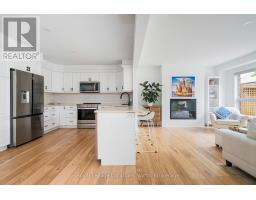 Discover this stunning 2,200 sq ft home nestled in the highly sought-after Creekside neighbourhood. Expertly renovated by Collingwood's acclaimed Kofoed Built, this elegant 3-bedroom, 3.5-bathroom residence offers an optional fourth bedroom in the finished basement, showcasing premium finishes that create a bright, open, and inviting atmosphere throughout. Step into the spacious, open-concept main floor where modern family living comes to life. The gourmet kitchen is a chefs dream, featuring high-end appliances, sleek white quartz countertops, and a large island perfect for gatherings. Relax in the living room adorned with a contemporary Napoleon fireplace, pristine white oak hardwood floors, recessed lighting, and an airy layout that seamlessly connects every space. Host unforgettable dinners in the dining area, bathed in natural light from a charming bay window. Sliding doors lead to a private backyard oasis with a newly built two-tier deck, and mature trees. Enjoy breathtaking west-facing sunset views from the serene back deck an entertainers paradise. Upstairs, the primary suite offers a tranquil retreat complete with a stylish ensuite and a spacious walk-in closet. Two additional bedrooms maintain the homes modern aesthetic, while a versatile landing space serves perfectly as a chic home office. The fully finished basement expands your living options, featuring a cozy family room, office nook/playroom, an extra bedroom, and a full bathroom. Ample storage solutions, including cold storage, ensure every need is met. Situated on the quiet, non-sidewalk side of the street and adjacent to Collingwood's scenic trail system and Black Ash Creek, this location perfectly balances peaceful nature with easy access to downtown Collingwood. Experience the perfect blend of contemporary elegance and everyday convenience in this exceptional Creekside home. (id:46441)