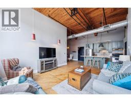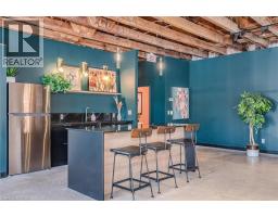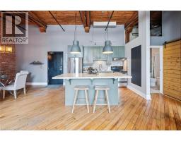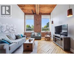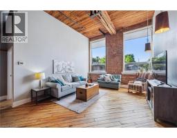 $778.44 MonthlyDiscover rare industrial-loft living at 122–26 Ontario St, nestled in the luxurious Mill Lofts—formerly the historic Guelph Worsted & Spinning Company, circa 1902 & thoughtfully converted into boutique condos in 2004. This tastefully updated 2-bdrm loft offers the best of both worlds: modern luxury finishes paired W/preserved historic charm all nestled in the heart of downtown Guelph—just steps from vibrant shops & cafés. Step inside & be captivated by dramatic 13ft ceilings showcasing exposed old-world wooden beams & original brick walls found in nearly every room. Oversized windows bathe the open-concept living & kitchen space in natural light, highlighting the rich hardwood floors & enhancing the warm, welcoming ambience. Sleek & sophisticated kitchen W/quartz counters, backsplash, S/S appliances & centre island W/pendant lighting—perfect for casual dining & entertaining. The adjacent dining space, graced with its own brick feature wall & designer lighting, rounds out the sociable layout. Both bdrms feature hardwood, massive windows, exposed brick & lots of closet space. Completing this home is renovated 4pc bath W/quartz counters & subway-tiled shower/tub. With only 78 units in this boutique heritage building, opportunities like this don’t come up often! Unit includes in-suite laundry, 1 parking spot, locker & access to large detached party room—perfect for hosting friends & family. Main floor living means you get all the benefits of maintenance-free condo life—without the hassle of stairs or waiting on elevators. Embrace the best of downtown with a highly walkable lifestyle, just steps to cafés, boutiques, dining hotspots, nightlife & GO Station. Just a few doors down from Standing Room Only, Canada’s smallest bar & beloved local gem. For nature lovers, York Rd Park is right around the corner with picnic areas & sports fields, while the scenic Eramosa River Trail winds peacefully along the water—perfect for walking, running or cycling right from your doorstep. (id:46441)