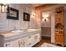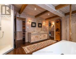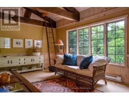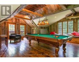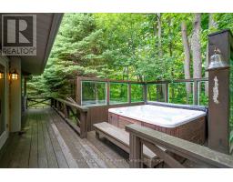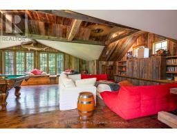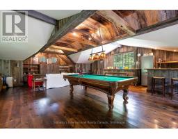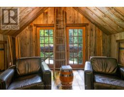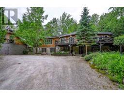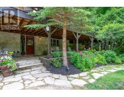 Le Coin Perdu  A Private 13-Acre Estate Retreat! Welcome to Le Coin Perdu, a rare sanctuary where timeless craftsmanship meets modern luxury living. Nestled on nearly 13 acres of former vineyard, this private estate offers trails, a managed forest with 300-500 new trees planted annually over 20 years, and a tranquil pond creating the ultimate retreat in nature.Step inside the custom-built residence completely renovated in 1998. Experience rustic elegance at its finest. Hand-hewn post-and-beam timber ceilings, flagstone and BC Pine flooring, and two dramatic stone fireplaces showcase authentic artistry with locally sourced stone and granite finishes. Oversized windows flood the home with light, framing views of lush greenery. The gourmet kitchen features a striking stone sink, stainless steel appliances, reverse osmosis water system, and a dining area with a solid wood table and wraparound banquette perfect for hosting family and friends.The spa-inspired bath offers a jet soaker tub, rainfall shower, and a cedar sauna for four. Outdoors, unwind in the hot tub beneath a canopy of trees, refresh in the outdoor shower, or relax on expansive wraparound decks. The private primary suite includes its own deck for sunset views. A detached 2-car garage built in 2006, crafted with vintage barn board and fieldstone, features a finished 30x40 loft with kitchenette, brass sink, pool table, TV lounge, and full field stone bathroom with open shower ideal for entertaining. Located minutes from Georgian Bays pristine shoreline, Meaford Harbour, premier golf, ski clubs, hiking, biking trails, and vibrant local markets, Le Coin Perdu offers an unmatched lifestyle of luxury, privacy, and adventure.This one-of-a-kind retreat blends European charm, rustic warmth, and modern amenities into a legacy property designed for those who value nature, comfort, and timeless beauty. (id:46441)