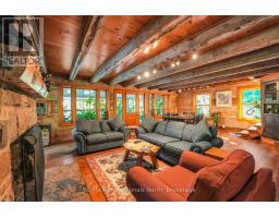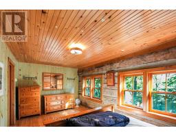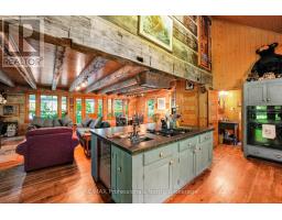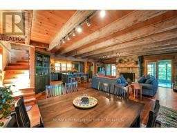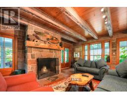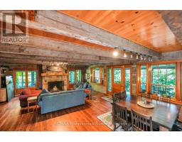 Welcome to Bluebeary Hill - a truly extraordinary Kennisis Lake property where history, craftsmanship, and modern comfort come together in perfect harmony. Set on 0.81 acres with 268 feet of pristine shoreline, this one-of-a-kind retreat offers a rare opportunity to own a piece of Ontario's architectural heritage in a breathtaking lakeside setting. At its heart is Ontario's oldest 2.5-storey log home, thoughtfully dismantled and meticulously reconstructed to preserve its legacy while embracing today's lifestyle. Inside, reclaimed stonework and a striking fireplace sourced from a historic Montreal church anchor the living space with timeless character and warmth. The home features three bedrooms and two bathrooms, with an open-concept main floor designed for gathering-complete with a spacious kitchen, sun-filled living areas, and seamless access to a generous sunroom and covered front porch, both offering sweeping lake views. A whimsical three-storey loft adds a sense of magic and possibility-perfect for kids or anyone young at heart. Year-round comfort is ensured with a new furnace and Generac backup system, making this property as practical as it is inspiring. Outdoors, the natural beauty of Kennisis Lake takes centre stage. Spend your days on the water, unwind by the shoreline, and end your evenings around the lakeside firepit under the stars. Bluebeary Hill is more than a home-it's a legacy property, rich in history and designed for modern living, offering an unforgettable lakeside lifestyle in the heart of Haliburton County. (id:46441)