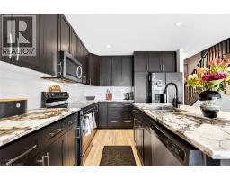 Beautiful 3 bedroom, 2.5 bathroom townhome with over 2,200 sq ft of finished living space. Bright open concept main floor with modern flooring, pot lights, and spacious living and dining areas. Stylish kitchen with dark cabinetry, stone countertops, stainless steel appliances, subway tile backsplash, and large island with breakfast bar. Upper level offers a generous primary bedroom, two additional bedrooms, and convenient second-floor laundry. Finished lower level provides extra living space for a rec room, office, or gym. Private fenced backyard with deck and patio area. Attached garage with driveway parking. Great location close to parks, schools, shopping, and quick highway access. (id:46441)
