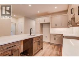 TAKE ADVANTAGE OF THE NEW GOVERNMENT REBATE PROGRAMS AND MAKE THIS BEAUTIFUL BRAND NEW BUNGALOW YOUR NEXT HOME. features stunning hardwood stairs and 9' ceilings on the main floor, creating a bright and elegant living space. The designer kitchen boasts upgraded cabinetry, a sleek quartz countertop with upgraded sinks and faucets throughout. The dining area overlooks the inviting great room with an electric fireplace and offers a walkout to a covered porch—perfect for relaxing or entertaining. The spacious primary suite includes a walk-in closet and a luxurious ensuite with a glass and tile shower. Additional upgrades include pot lighting, modern doors and trim, updated plumbing fixtures, and high-quality hard surface flooring throughout the carpet-free main level. Ideal for multi-generational living, this home offers in-law suite potential. The fully finished basement features a recreation room, bedroom, and a 3-piece bathroom. Nestled on a quiet crescent backing onto a forested area, this property combines privacy with convenience. Enjoy the charm of Elmira’s small-town atmosphere, complete with parks, trails, shopping, and amenities—just 10 minutes from Waterloo and Kitchener. A truly impressive home you won’t want to miss. (id:46441)