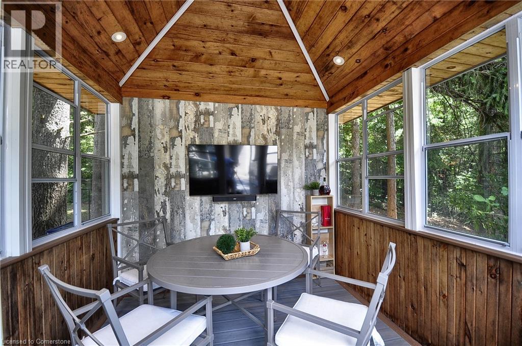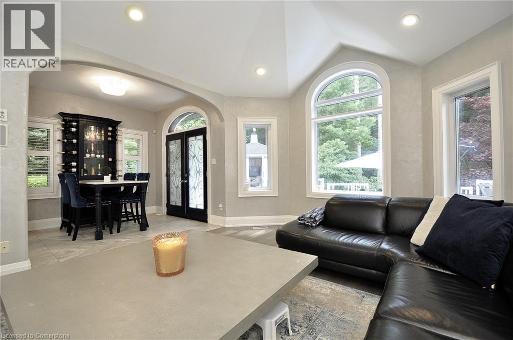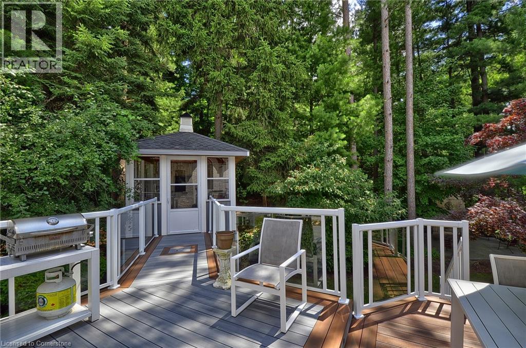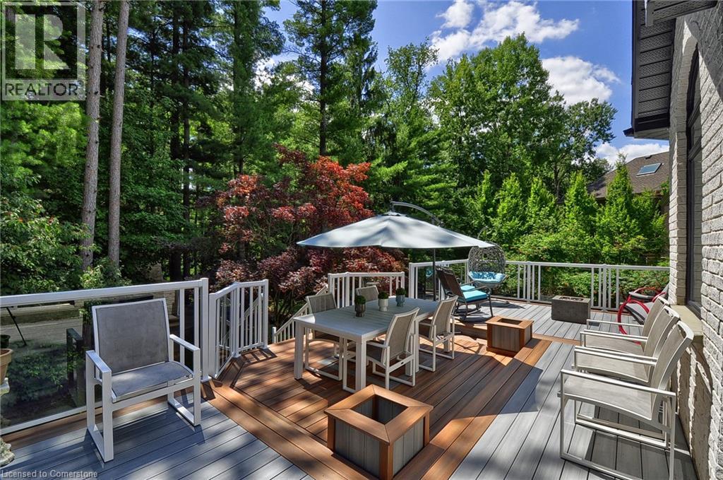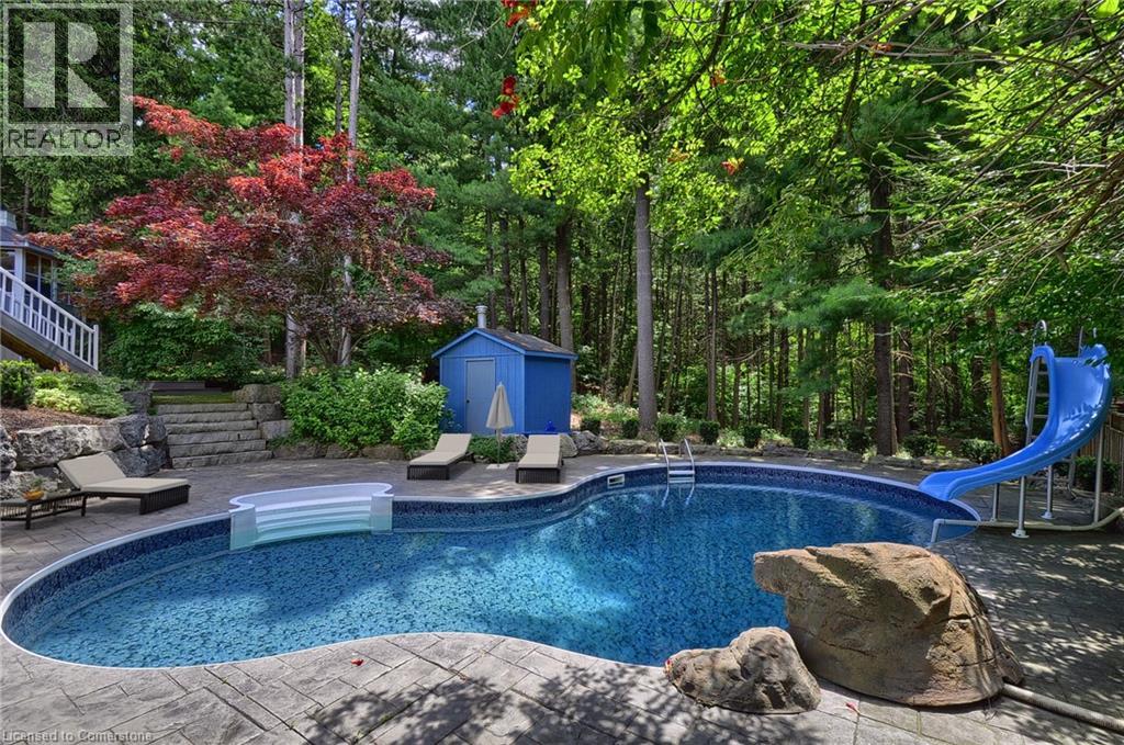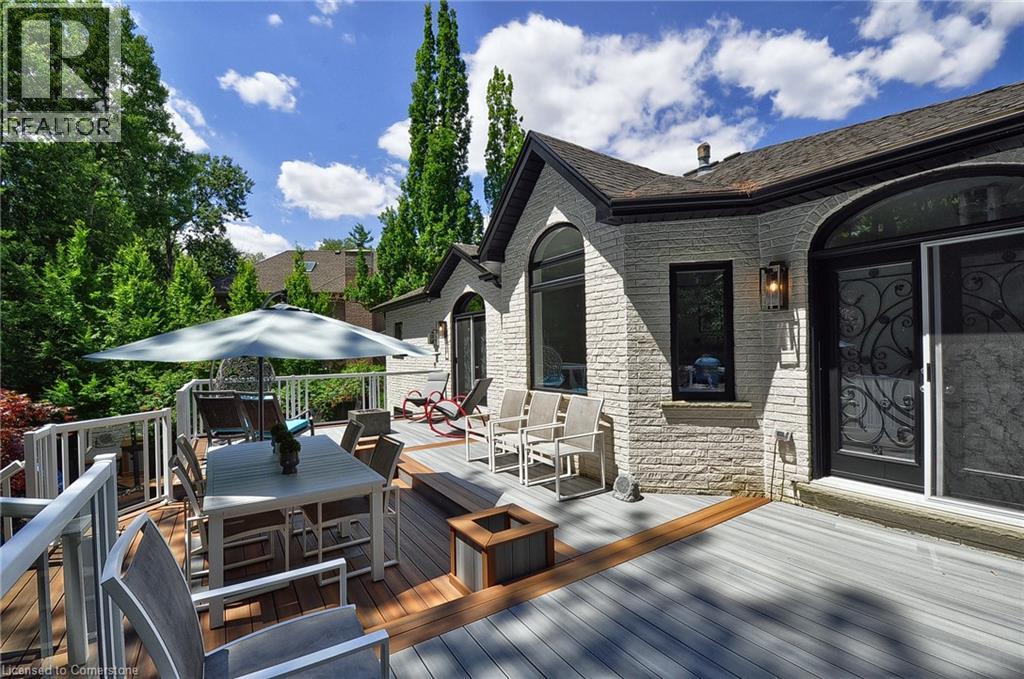 One of a kind, luxury bungalow in one of Doon’s most exclusive enclaves, welcome to Wyldwoods. This extraordinary residence is on a private court with an extraordinary lot that will transform you to a private oasis. With an abundance of mature trees, you’ll enjoy resort-style living in your own backyard. With an in-ground pool, expansive maintenance-free composite deck with a bridge to a fully finished outdoor living area, perfect for an art studio, a place to watch the big game, play a game of cards. French doors from the primary bedroom and also from the kitchen lead to the outdoor living area. For additional outdoor living, tucked away in the trees is a patio with a wood burning fireplace. This custom-built bungalow has been fully transformed and updated in the last 3 years and features venitian plaster walls and finishes that were meticulously sourced and often not found in local home mprovement stores. The main level features 3 spacious bedrooms, two of them each have their own private ensuite bathroom plus there’s 3rd full bathroom on the main level. The primary ensuite features imported artisan tiles from Spain, a soaker tub and oversized glass enclosed shower & granite counters. The showpiece kitchen has custom built-ins features like the island table with attached wine wall and a one of kind ceiling mural. The fully finished basement has a walk out with french doors to the pool, a massive media room and spa inspired bathroom complete with galss enclosed steam room/shower. Plus a complete apartment with a separate private entrance from the garage walk down, suitable for multigeneral families or those looking for additional income from the basement apartment. Three gas fireplaces each with one of a kind stone mantels. The dream triple garage with wall mounted whisper quiet door openers and hydrolic car lift/hoist adds even more distinction to this one of kind home. 2024 Air conditioner Pool heater 2019 Pool liner 2018 Pool pump 2010 Roof (id:46441)