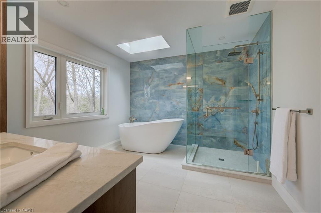 Is it the finest bungalow on the nicest street in all of Waterloo Region? Maybe.* Don't let the modest classic mid century modern frontage fool you, once inside this home opens up to many wonderful spaces and large windows throughout. A walk out bungalow, designed to sit behind adjacent homes, giving panoramic views from almost all principal rooms of the mature forest/nature. Many trees over 100 years old are on the property and street. A major addition reimagined the home, meshing mid century feel with modern finishes. The kitchen/living area is open but not a bland box. This space flows from the bright, large, functional kitchen into a wonderful gathering place with awe inspiring views. This is a special place for family and entertaining. The master bedroom is a private setting with an ensuite that is top of class, tranquil, a spa like experience. A walk out to a separate balcony, for a morning coffee or a quiet evening, completes this space. Main floor laundry rare in a 1960's home. The basement really isn't a basement with walk out and floor to ceiling windows in a couple of the rooms. An entertainment area for movie nights as well as a warm family room to gather around. The main bedroom on this level has huge windows with great forest views. This might be the nicest room in the home, a special place. This home could easily be have second/bright kitchen downstairs as plumbing is in place. This allows for second suite or conversion to duplex. Plumbing for 2nd laundry in place too. Close to the expressway, universities, shopping and transit, the location is exceptional and the 60 acre park a rarity in a central location. Come have a look, there is nothing quite like this home in this region. A special place great for dog walkers, nature lovers and is a birding paradise. Google the Record article which mentions why Ferndale is the nicest street in the region. (id:46441)