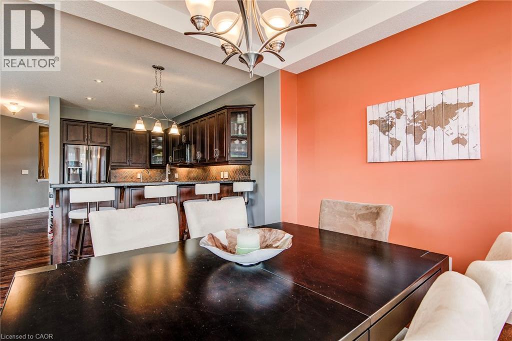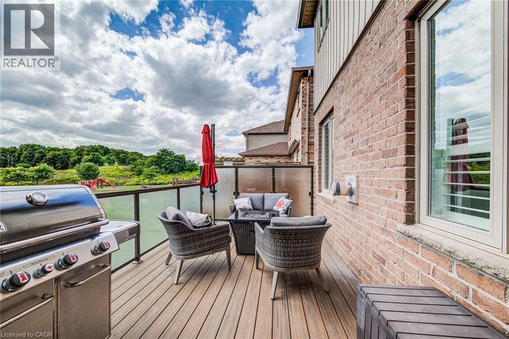 Welcome to 279 Zeller Drive, a rare combination of style, space, and serenity nestled in one of Kitchener’s most desirable family-friendly neighbourhoods. This beautifully maintained 3-bedroom, 4-bathroom home offers over 2,200 square feet of living space, with a layout tailored for comfort and flow. Step inside to a grand front foyer with soaring ceilings and an exposed wood staircase that sets the tone for the home's upscale finishes. The gourmet kitchen features granite countertops, espresso cabinetry, and stainless steel appliances, flowing seamlessly into the sunlit dining area and cozy living room with a gas fireplace. Hardwood floors and large windows throughout ensure every space feels warm and welcoming. The finished walk-out basement includes a spacious rec room with a wet bar and a dedicated fitness studio, perfect for staying active and entertaining with ease. Step outside to your private backyard oasis, backing directly onto a tranquil park and green space with a playground just beyond your fence. Whether you’re entertaining under the covered patio or exploring the nearby Grand River trails, Lackner Woods, or Chicopee Ski Hill, this home offers a lifestyle designed for both relaxation and adventure. Proximity to both public and Catholic schools, public transit, and everyday amenities make this a dream home for growing families who value nature and convenience. (id:46441)
