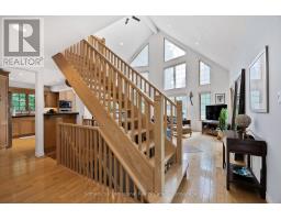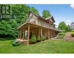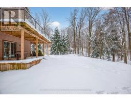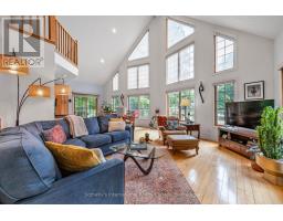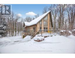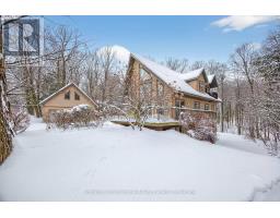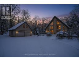 Welcome to 28 Big Tree Circle, an architecturally designed home on a private 1-acre forested lot, offering over 2,500 sq. ft. of finished living space with 4 bedrooms and 3 bathrooms. Surrounded by mature trees, this home provides privacy, beauty, and comfort year-round. Just minutes from Mansfield Ski Club, Mansfield Outdoor Centre, and a short walk to the Boyne River, enjoy skiing, snowshoeing, hiking, and biking, with the charm of Creemore and easy access to Collingwood nearby. Inside, maple floors, a granite and maple kitchen, and an open-concept living, dining, and kitchen area with a dramatic wall of east-facing windows create a bright, welcoming space with serene forest views. The second-floor primary suite offers a 3-piece ensuite, sitting area overlooking the main living space, and a private treetop deck. The main floor also includes a bedroom or office with an adjacent 3-piece bath-ideal for guests or remote work. The fully finished walk-out lower level features two additional bedrooms, a 3-piece bath, a large games room, TV area, and a covered porch-perfect for relaxing in nature. A detached double-car garage with loft provides space for vehicles, hobbies, or storage. Whether for full-time living or a weekend escape, 28 Big Tree Circle combines architectural design, natural beauty, and four-season living just one hour from Toronto Pearson Airport and the GTA. (id:46441)