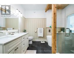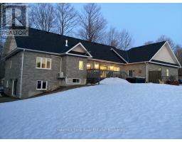 Tucked away on a picturesque, tree-lined half-acre lot in the desirable community of Moonstone, this stunningly renovated bungalow offers the perfect blend of modern elegance and country charm. With substantial renovations and upgrades since 2021, this move-in-ready home is an absolute showpiece. The main floor boasts soaring vaulted ceilings, an open-concept layout flooded with natural light, and in-floor radiant heating throughout for year-round comfort. The completely renovated kitchen is a chef's dream, seamlessly connecting to the dining area, where a beautiful gas fireplace sets the perfect ambiance. Step outside to the expansive deck with a hot tub and fully fenced yard, ideal for entertaining or unwinding under the stars. This home offers three spacious bedrooms on the main level, as well as a home office--an ideal setup for remote work. Additional updates include renovated bathrooms (main floor 2024, primary ensuite 2025), a new roof (2024), and a new heat pump (2025). The fully finished lower level is built for enjoyment, featuring a Rec Room, Bar, Bedroom, 3 pc. bathroom, with a walkout that offers potential for a separate basement suite entrance. Completing the home is an oversized, insulated three-car garage with in-floor radiant heating, perfect for extra storage or workshop space. Located just five minutes from St. Louis Moonstone Ski Hills, this incredible home offers four-season recreation at your doorstep. Don't miss this rare opportunity to own a beautifully designed retreat in one of the area's most sought-after locations! (id:46441)