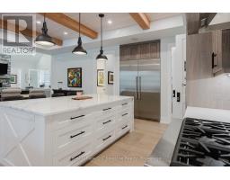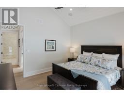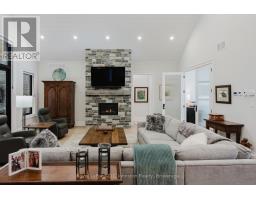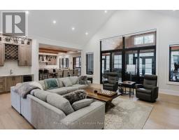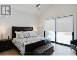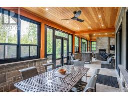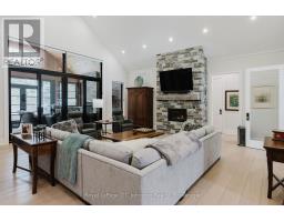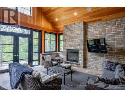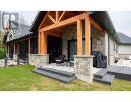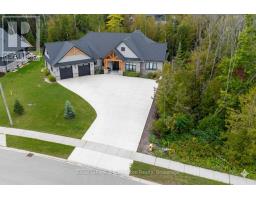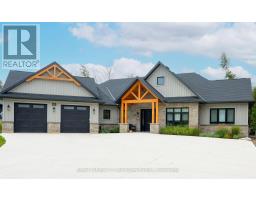 Introducing an architectural masterpiece where bespoke craftsmanship meets unparalleled luxury. Step inside this stunning 3267 square foot bungalow, built without stairs on grade, and immediately experience the soaring great room with a vaulted white shiplap ceiling, a custom floor-to-ceiling stone gas fireplace, and a sleek wet bar with Marvel bar fridge. This space seamlessly flows into the gourmet kitchen and dining area, which are defined by Douglas fir ceiling beams and a white washed tongue and groove ceiling. The kitchen is outfitted with gorgeous maple cabinetry, upscale Thermador appliances, a quartz island with a waterfall edge and a large walk in pantry. The property extends its entertaining opulence to a fully enclosed 650 square foot three season sunroom featuring a second gas fireplace, spectacular milled Douglas fir ceilings and beams and heated sandblasted stone floors. A serene primary suite awaits, complete with a vaulted shiplap ceiling, walk-out to a large covered porch and ensuite featuring an oversized walk-in shower and freestanding tub. The split-plan design separates the guest bedrooms and bath for ultimate privacy. The home features a 500 square foot bonus room with a full bath and separate heating/cooling above the garage. Equally focused on functional luxury, there is a dedicated laundry room with custom cabinetry and quartz countertops, as well as a mudroom with coordinating maple cabinets and quartz counters - providing an elegant transition from the oversized double garage. Every detail, from the exquisite millwork, heated towel bars, in-floor gas hot water heating, Generac standby generator,, speaks to a life of refined comfort. Situated midway between Port Elgin and Southampton, this absolutely exquisite home, clad in stone and Maibec wood siding on a private wooded lot, is ideally located to take full advantage of the coveted four-season lakeside lifestyle Saugeen Shores is known for. (id:46441)