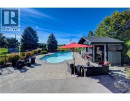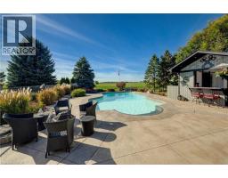 Welcome to 28 Musselman Crescent. Nestled on a peaceful crescent in the charming village of Conestogo, this stunning all-brick bungalow blends luxury, functionality, and serene country living. With 3 bedrooms, 3 bathrooms, and nearly 4,875 total square feet of finished living space, this home is a true showstopper inside and out. The professionally landscaped gardens, driveway with parking for 6, and a heated 2-car garage lead to the welcoming front entrance. Step inside to an inviting open-concept layout with hardwood floors, pot lights, and large windows that fill the home with natural light. The living room features a cozy gas fireplace and windows looking out to the backyard oasis, creating a seamless indoor-outdoor flow. The chef’s kitchen boasts stainless steel appliances, quartz countertops, tiled backsplash, large pantry, and breakfast bar, connecting to the dining area with floor-to-ceiling windows and walkout to the patio. The main floor includes three spacious bedrooms. The primary suite offers two walk-in closets and a spa-like ensuite with heated floor and custom tiled shower. A 4-piece main bathroom and large laundry/mudroom with heated tiled flooring complete the level. The finished basement provides exceptional additional living space with an oversized rec room featuring 8+ foot ceilings, a wood-burning fireplace and stone-accented wet bar, a 3-piece bathroom, and abundant storage. Your private backyard oasis boasts an in-ground pool with a waterfall feature and a cabana featuring a water closet and poolside bar. Imagine starting your day with coffee or winding down with stunning sunset views looking onto tranquil farmers' fields with no rear neighbors, a perfect blend of privacy and tranquility. This home offers rural peace while being minutes from Elmira, Waterloo, and St. Jacobs. Close to trails, schools, markets, and all amenities, this property captures the best of both worlds. (id:46441)