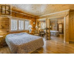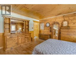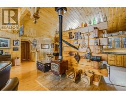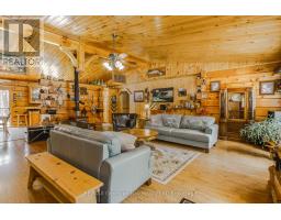 White pine log home on 48.8 acres. Consists of 3 bedrooms, 2 bathrooms a large living room with vaulted ceilings finished in tongue and grove pine. The basement is unfinished because it is was used as a woodworking shop. Walk-out from Kitchen/Dining area to 16' x 14' patio/deck redone last year. There is a large cleared area at the front of the property to build a large detached garage/workshop. Nature is at its best with walking trails throughout the property including a pond. The property consists of white and red pine and numerous hardwood which can be used to heat the house. Heat source consists of a airtight woodstove plus a propane gas furnace. There is a Forest Management Program presently being used for this property. The property taxes noted on the listing includes the reduction in taxes with having this program. This management program is not assumable therefore an application will be required by the new owner. (id:46441)