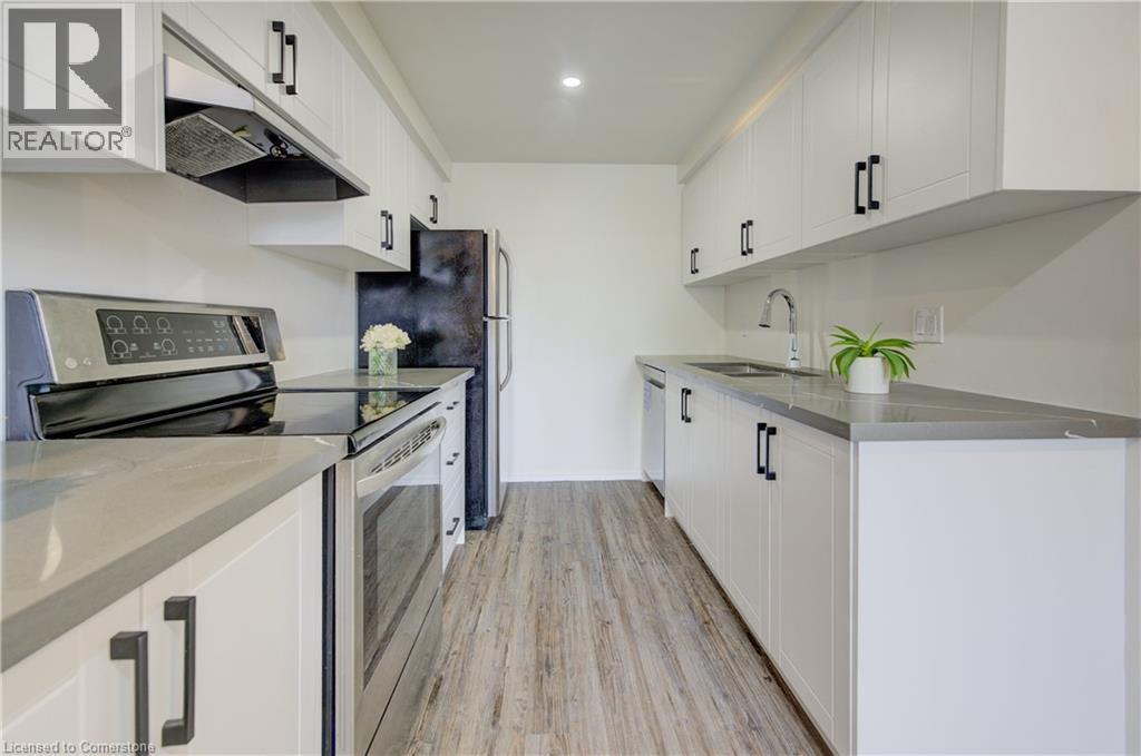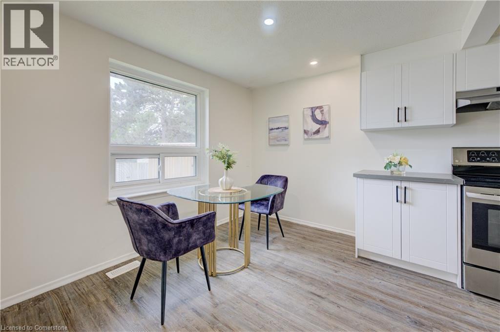 Welcome to 280 Thaler Avenue, Unit 9, a beautifully renovated 3-bedroom, 2-bathroom townhome in a prime Kitchener location! Step inside to discover a bright and modern interior featuring new floors, fresh paint, and upgraded windows that fill the space with natural light. The main level boasts of a spacious living room with a large new window and pot lights, offering a warm and inviting atmosphere. The eat-in kitchen with new stainless steel appliances, updated white cabinetry, quartz countertops, and sleek pot light is sure to impress and is perfect for both everyday living and entertaining. Upstairs, you'll find three generous-sized bedrooms, all finished with new flooring, pot lights, along with a stylish 4-piece bathroom. The finished basement offers added versatility with a cozy recreation room, an additional bathroom and new laundry appliances , ideal for a home office, playroom, or guest suite. Other major amenities include a furnace and A/C unit, ensuring year-round comfort. Located in a family-friendly neighbourhood close to schools (especially an upcoming Catholic school) shopping, public transit, and highway access, this move-in-ready home is perfect for first-time buyers, downsizers, or investors alike. (id:46441)