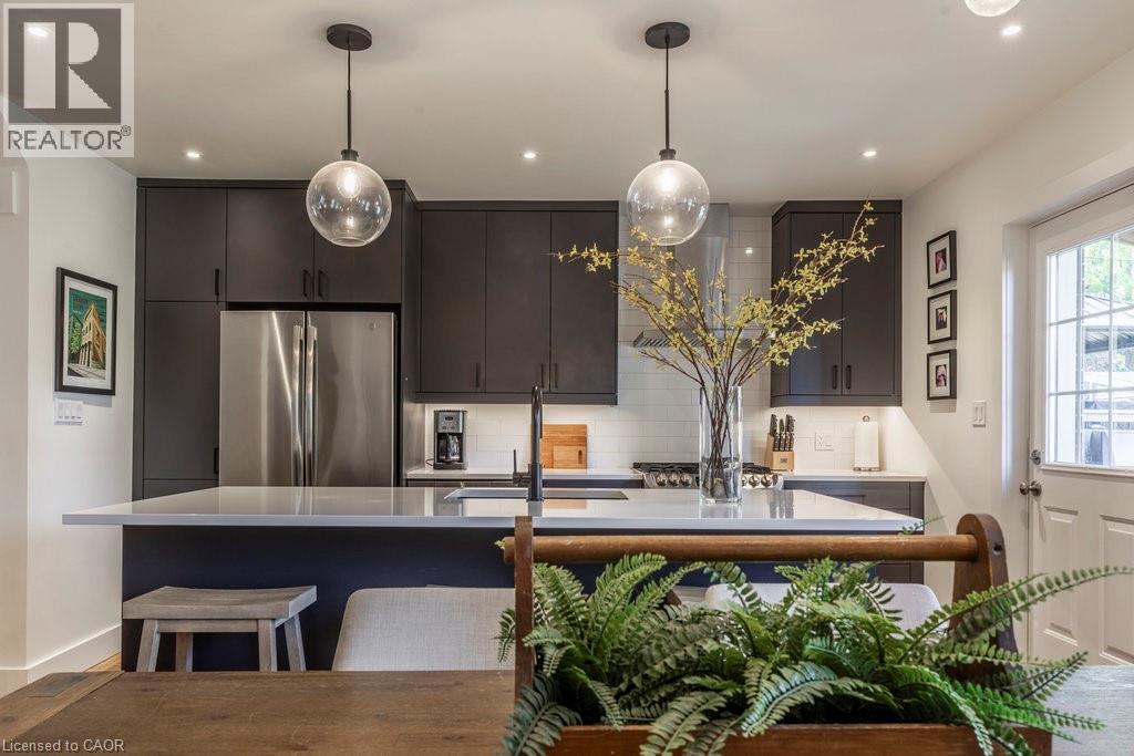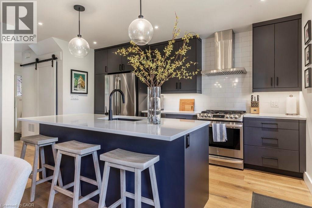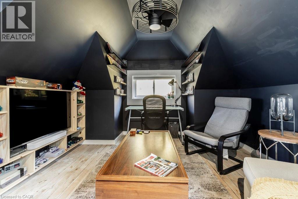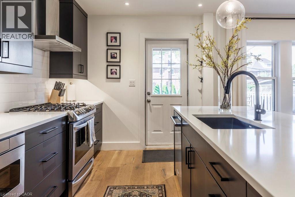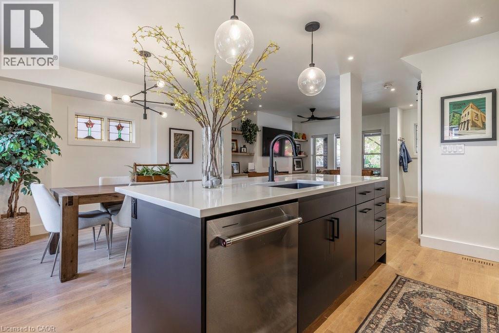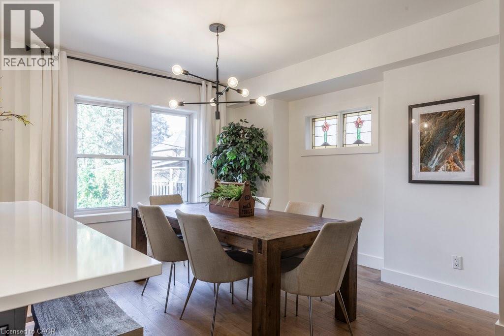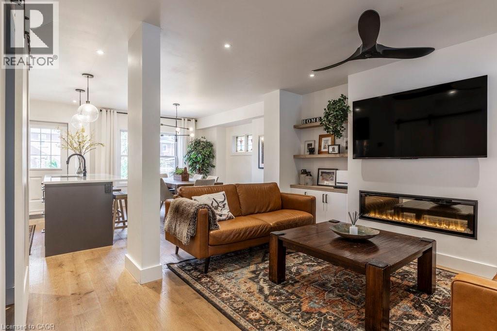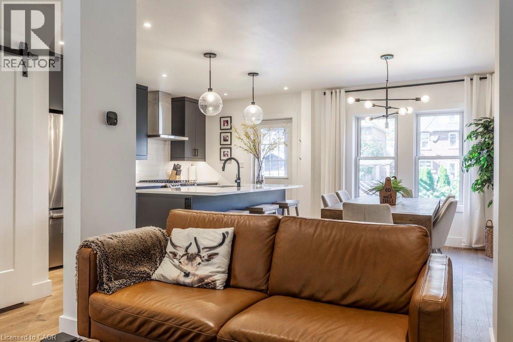 Welcome to this beautifully updated home in the sought-after Delta community. Known for its friendly neighbours, tree-lined streets, & close proximity to Gage Park, Ottawa Street, transit, & amenities — this location has it all. Built in 1931, this timeless 2.5-storey home has seen numerous thoughtful updates over the past eight years, including a major renovation in 2022 by Heartwood Renovations. The main floor now offers a seamless open-concept flow, blending modern design with classic character. The kitchen is a showstopper — stylish and functional with an island, pot lights, ample storage, & perfectly chosen fixtures, all open to the dining area. The cozy living room is anchored by an electric fireplace framed with custom shelving that’s perfect for displaying your favourite memories. Upstairs, you’ll find three bedrms (one currently serving as the dressing room) & a spa-inspired bathrm complete with a freestanding soaker tub & walk-in shower wrapped in serene seafoam tile. The finished loft boasts endless versatility. Think movie nights, home office, 4 th bedrm, or the ultimate lounge space; whatever you desire. Out front, enjoy morning coffee on the classic covered porch. Out back, the private, fully fenced yard is an entertainer’s delight with a covered deck, pergola, firepit area, & lush landscaping. The detached single-car garage with hydro rounds out this picture-perfect property. A home with heart, character, and all the right updates — ready for its next chapter. (id:46441)
