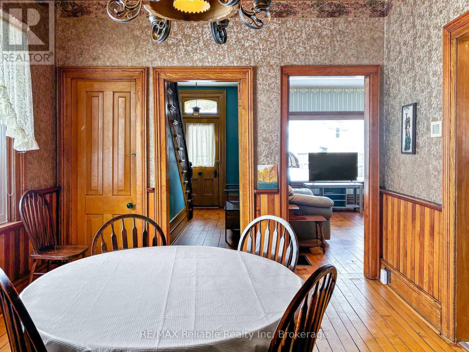 Solid brick home with loads of character, the main level features family room overlooking great backyard , 3 piece bathroom, eat in kitchen plus separate dining area with gorgeous wood ceiling. The bright living room is great for entertaining and leads to the open staircase. The upper level has three average sized bedrooms and a three piece bathroom with a great soaker tub. The exterior brick is in good condition along with a metal roof approx. 9 years old. The amazing lot and half gives lots of space for family, 99 feet frontage with 165 feet deep in a good Residential area (id:46441)