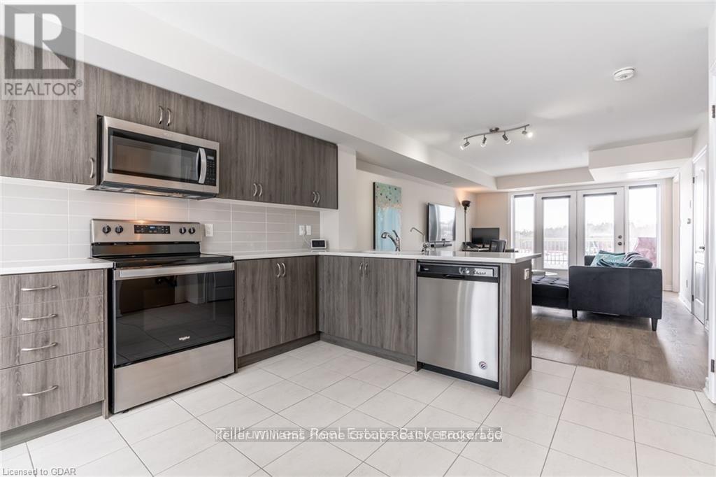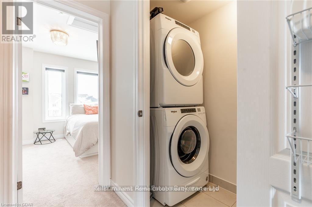 This beautiful 2 bedroom and 3 bathroom stacked townhome has a bright and welcoming layout. The kitchen features modern cabinetry with stainless steel appliances, large windows flooding in loads of natural light and overlooking an upcoming park/playground, a large pantry, gleaming backsplash tiles, and quartz countertops. The living room is roomy and bright with patio doors leading to the large back deck where you can enjoy your morning coffee. The main level also has a 2pc bathroom off of the living room. Upstairs you will find a practical laundry closet, as well as two spacious bedrooms, each with their own double closets and ensuite bathrooms. Another deck can be found off of the primary bedroom, overlooking a convenient upcoming plaza. This immaculate stunner also features a spacious garage for extra storage, and is conveniently located close to shopping, schools, parks, playgrounds, trails, and Hwy 7. (id:46441)