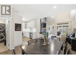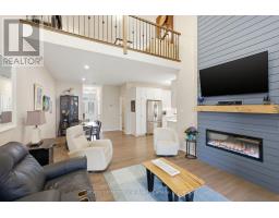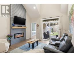 Stunning Sunvale bungaloft townhome set on an extra-deep premium lot backing onto the scenic railway trail and a serene forested area. Designed for effortless main-floor living, this home features a bright open-concept kitchen, dining, and living space highlighted by a soaring vaulted ceiling, oak hardwood flooring and a beautiful fireplace as the focal point.The living area seamlessly extends to a covered porch-perfect for relaxing or entertaining-while a separate deck overlooks the beautifully landscaped, expansive backyard. The main-floor primary suite offers a walk-in closet, a 4-piece ensuite, and peaceful views of the lush rear yard.Upstairs, a lofted space open to below creates an airy feel and is complemented by a dedicated office, two additional bedrooms, and a 4-piece bathroom-ideal for family or guests. Additional features include a 1.5 car garage with inside entry, parking for two vehicles in the driveway, main floor laundry and a full unfinished basement ready for your customization.Ideally located close to downtown Collingwood, local schools, and an abundance of trails, this home offers the perfect blend of comfort, style, and convenience. (id:46441)