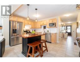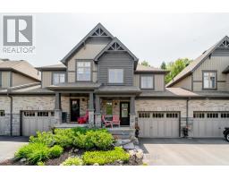 Welcome to 3 Kelsey Madison Court a stylish and low-maintenance two-storey freehold townhouse in the desirable Brookside Crossing community of Huntsville. Built in 2019 by award-winning Devonleigh Homes, this beautifully maintained 3-bedroom, 2.5-bathroom home offers the perfect balance of comfort, function, and modern style, making it an ideal choice for young professionals, families, couples, or retirees. The exterior features a charming blend of brick on the main level with sandstone-toned vinyl siding above, a paved driveway, and mature trees in the treed zone behind the property that provide natural privacy and a peaceful setting. Inside, an open-concept main floor is designed for everyday living and entertaining, highlighted by a custom built-in unit with an electric fireplace, stone face surround, and mounted TV. A convenient powder room completes the main level. Upstairs, you'll find three well-appointed bedrooms, two full bathrooms, and laundry. The primary suite is thoughtfully designed, while the additional bedrooms offer flexibility for family, guests, or a home office. Step outside to the oversized back deck perfect for hosting summer dinners or enjoying a quiet morning coffee. The backyard is enhanced with fruit trees, gardens, and a contained fire pit, offering a cozy outdoor retreat. This welcoming neighbourhood also includes a park and the Gypsy Bill Creek, which flows to Fairy Lake, just steps from your front door. Everyday conveniences are close at hand, with Huntsville Hospital, grocery stores, restaurants, doctors offices, boutique shopping, and even dog parks only minutes away. For outdoor enthusiasts, Arrowhead Provincial Park, local lakes, and rivers provide endless recreational opportunities year-round. Move-in ready and set in one of Muskoka's most sought-after communities, this home is the perfect place to start your next chapter. (id:46441)