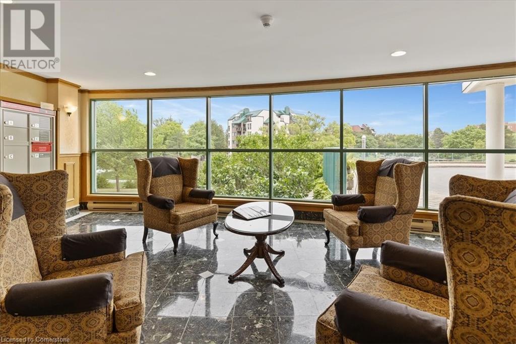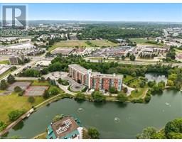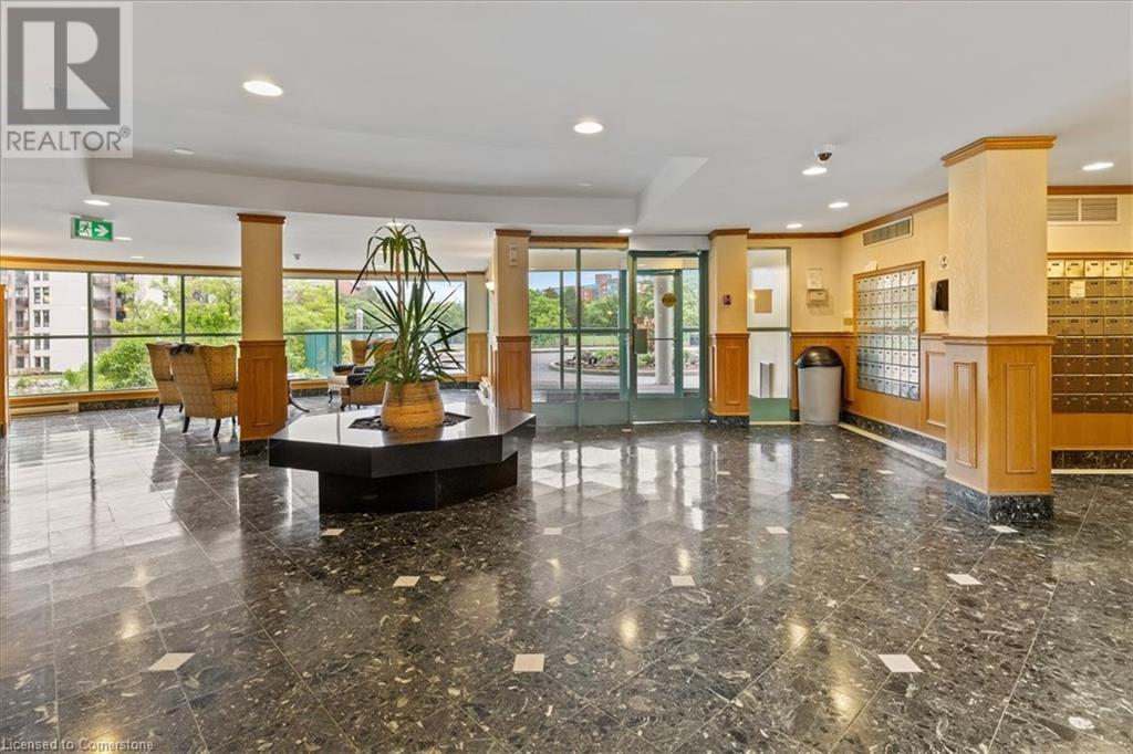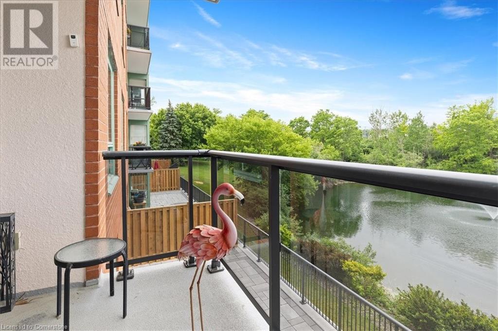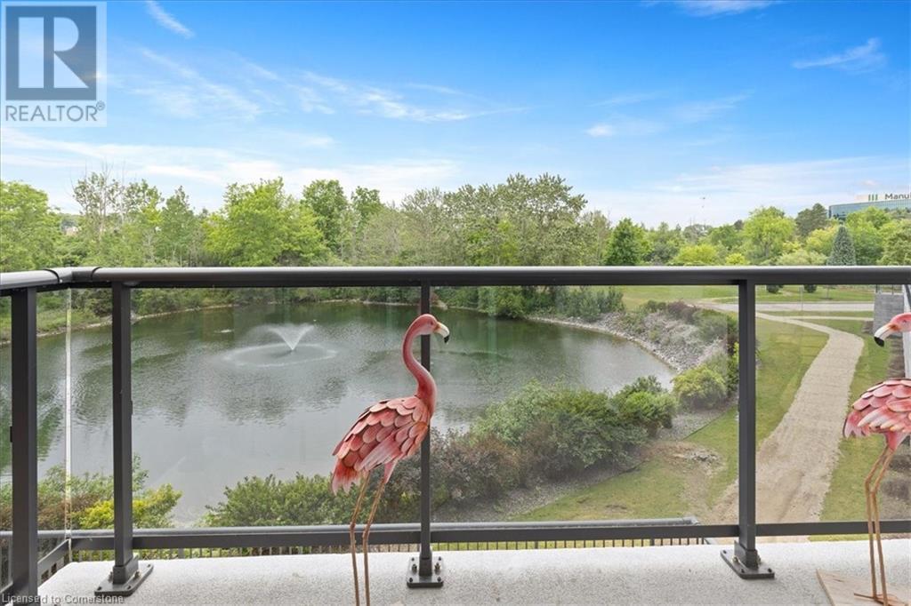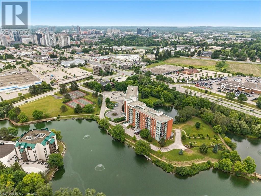 Discover your urban sanctuary in vibrant Uptown Waterloo! This 2-bedroom, 2-bath condo in a sought-after building blends tranquility with convenience. Steps from Conestoga Mall, three grocery stores, restaurants, and boutiques, you’ll relish the walkable lifestyle. Commuting is a breeze with the nearby LRT station, bus stop at King & Blue Springs Dr., and easy access to the expressway. Plus, Conestoga College, University of Waterloo, and Wilfrid Laurier University are nearby. Marvel at breathtaking views of Four Wells Lake and its lush treeline, framed by floor-to-ceiling living room windows that bathe the unit in natural light. Surrounded by scenic trails, ponds, and streams, this condo offers a serene escape with nature at your doorstep. Inside, the 961 sq. ft. layout includes a galley kitchen with breakfast nook and ample storage. The open-concept living/dining area is perfect for entertaining or quiet nights in, while two spacious bedrooms and two full baths provide flexibility and privacy. In-suite laundry, a private storage locker, and one underground parking spot (plus a second surface space) add everyday convenience. Elevate your lifestyle with exceptional amenities: secure entry, updated balconies, touchscreen directory, and elevators. Unwind in the rooftop lounge with sundeck and gas BBQ, or host events in the party room (for a small fee), both with kitchens and restrooms. Savour summer barbecues by the back pond’s pergola, or book the guest suite for overnight visitors. With ample visitor parking, bike storage, and a library, every detail enhances your living experience. Priced at $449,900, this move-in-ready condo is a blank canvas awaiting your personal touch. Don’t miss the chance to embrace Uptown Waterloo’s perfect blend of urban energy and natural serenity. Interior photos are unavailable out of respect for tenant privacy. Showings can be arranged with notice, and vacant possession is available if purchased for personal residence. (id:46441)
