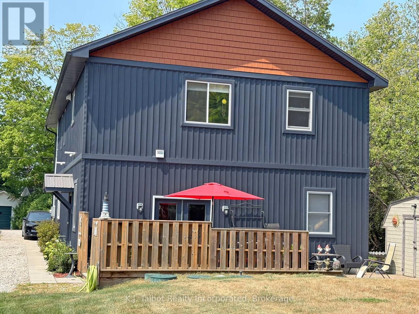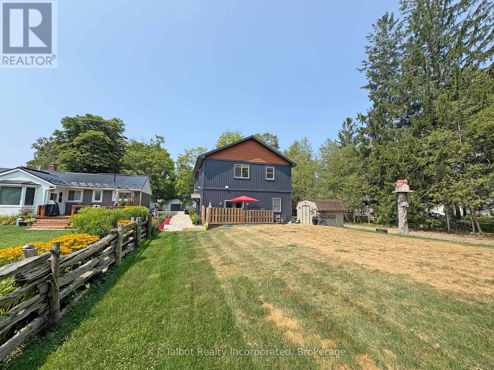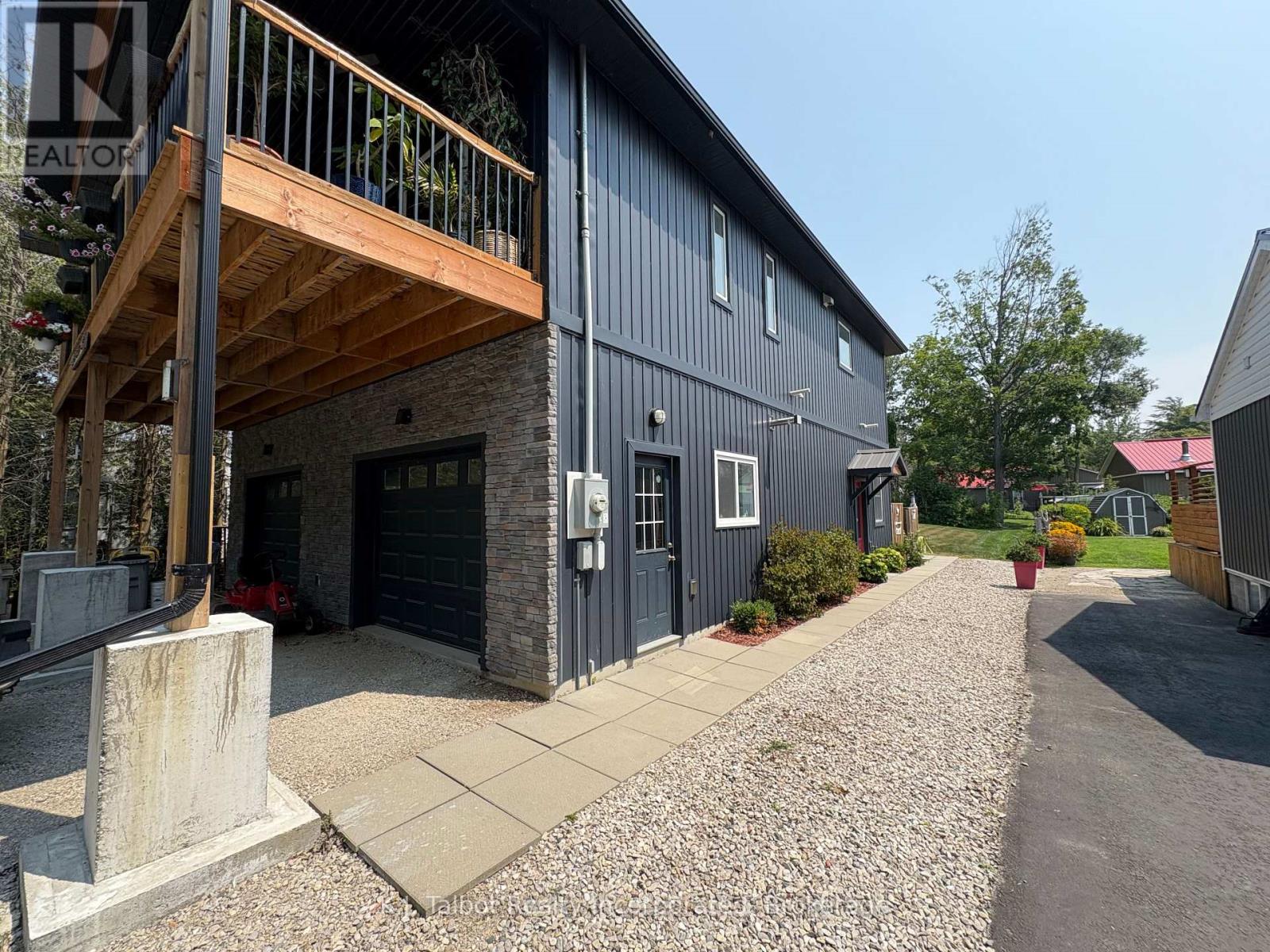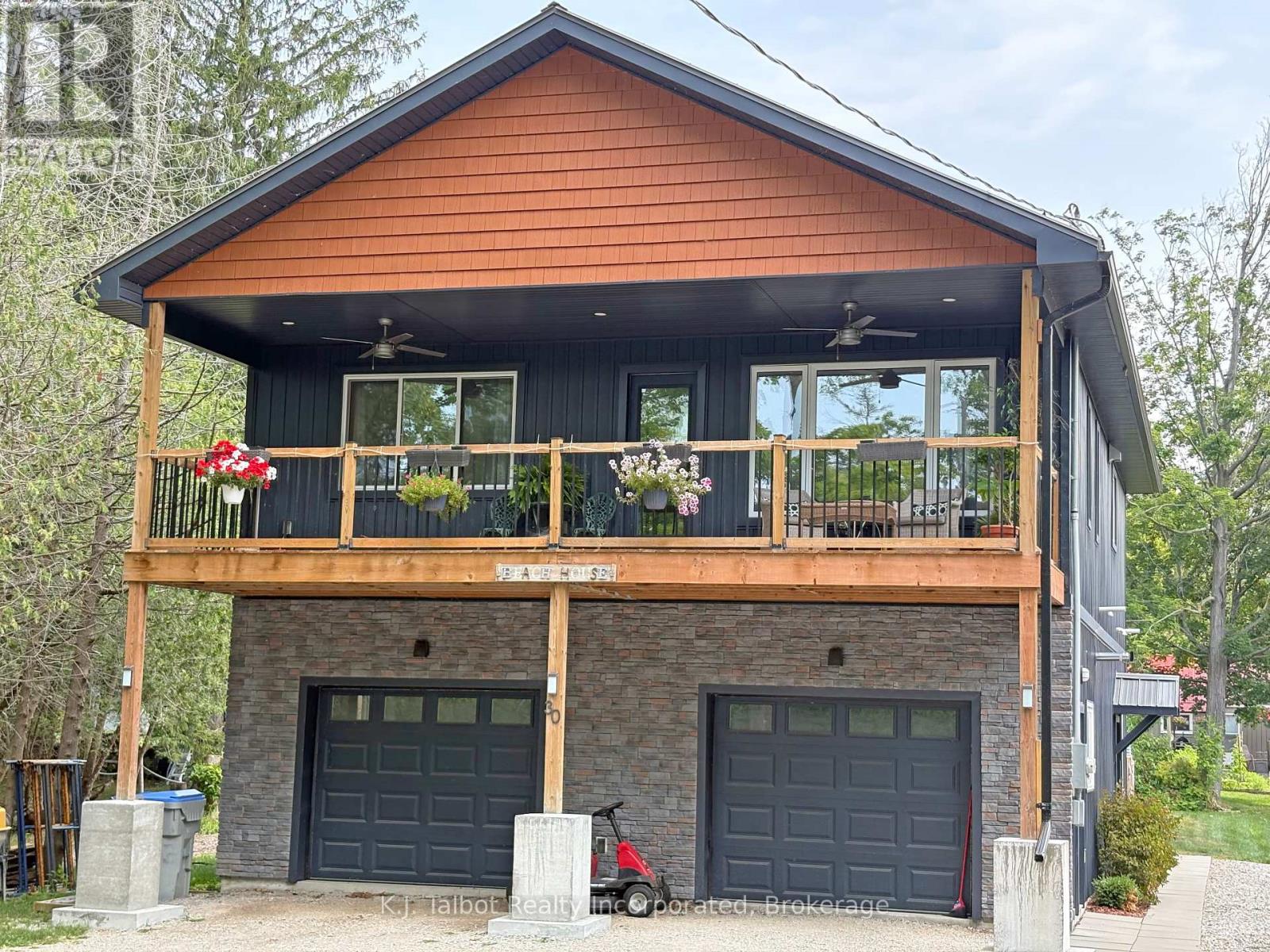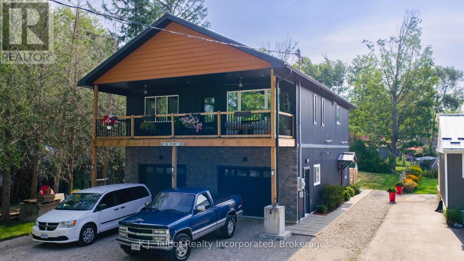 Presenting an impressive lakeside property along the beautiful shores of Lake Huron. This uniquely designed 2021 slab-on-grade, two-story home features an oversized two-car garage and is ideally situated just minutes south of Goderich in the established Lakeside community of Bluewater Beach. Residents will appreciate the short walking distance to beach access, a playground, a pavilion, and nearby trails, perfect for outdoor enthusiasts. This distinct residence, offering two plus one bedrooms and two bathrooms, is ideal for those seeking an unconventional and comfortable living experience. The upper level boasts a stunning open-concept kitchen, dining, and living room, showcasing a large kitchen island with gleaming quartz countertops and a generous walk-in pantry. The main level exhibits an urban-style vibe with a family room, utility area, a 3-piece bathroom, and a potential third bedroom or office space. The home is thoughtfully designed with two decks to enhance comfort and enjoyment of the outdoor space. Notably, the upper front deck includes ceiling fans that help circulate air, maintaining a cool environment on warm days and deterring insects, thus creating a versatile and enjoyable outdoor area for relaxation and entertainment. Additional features include a seasonal lakeview, backyard shed, natural gas BBQ hook up, plenty of parking and central vac. This is a quality home with so much to offer, we encourage you not to miss out! (id:46441)