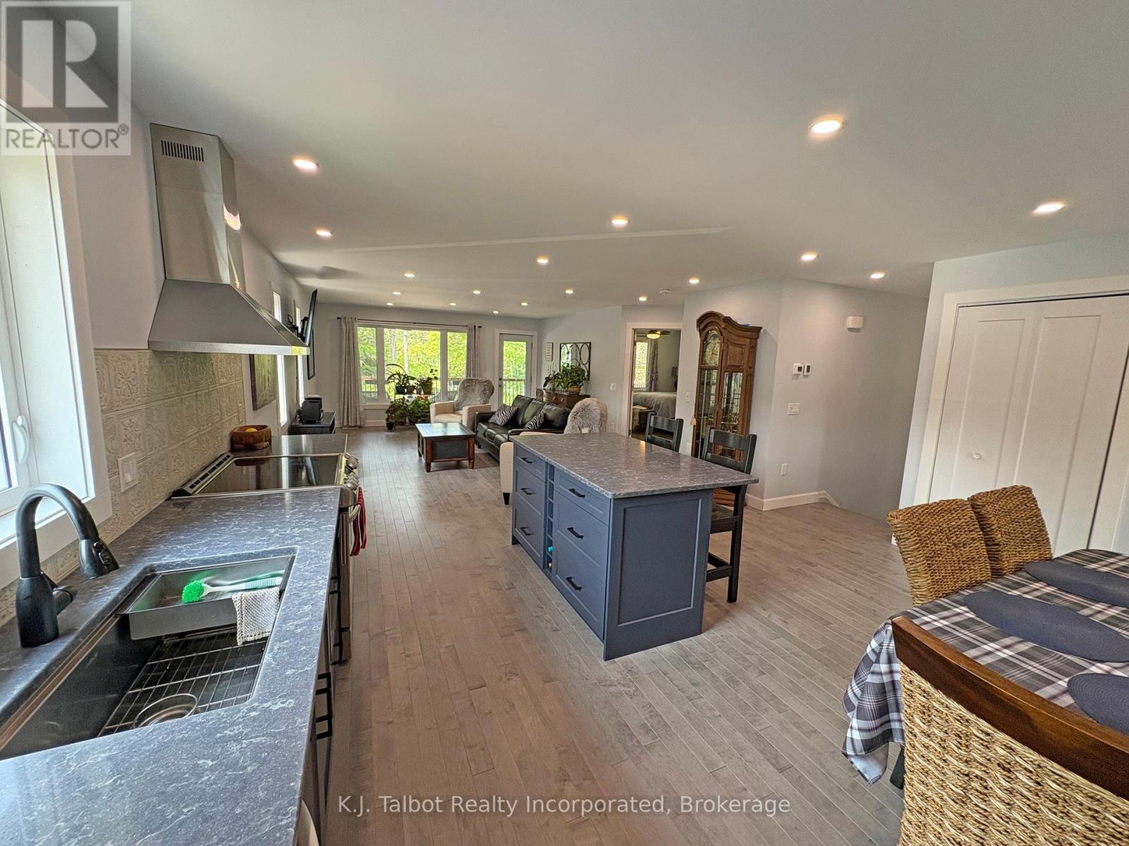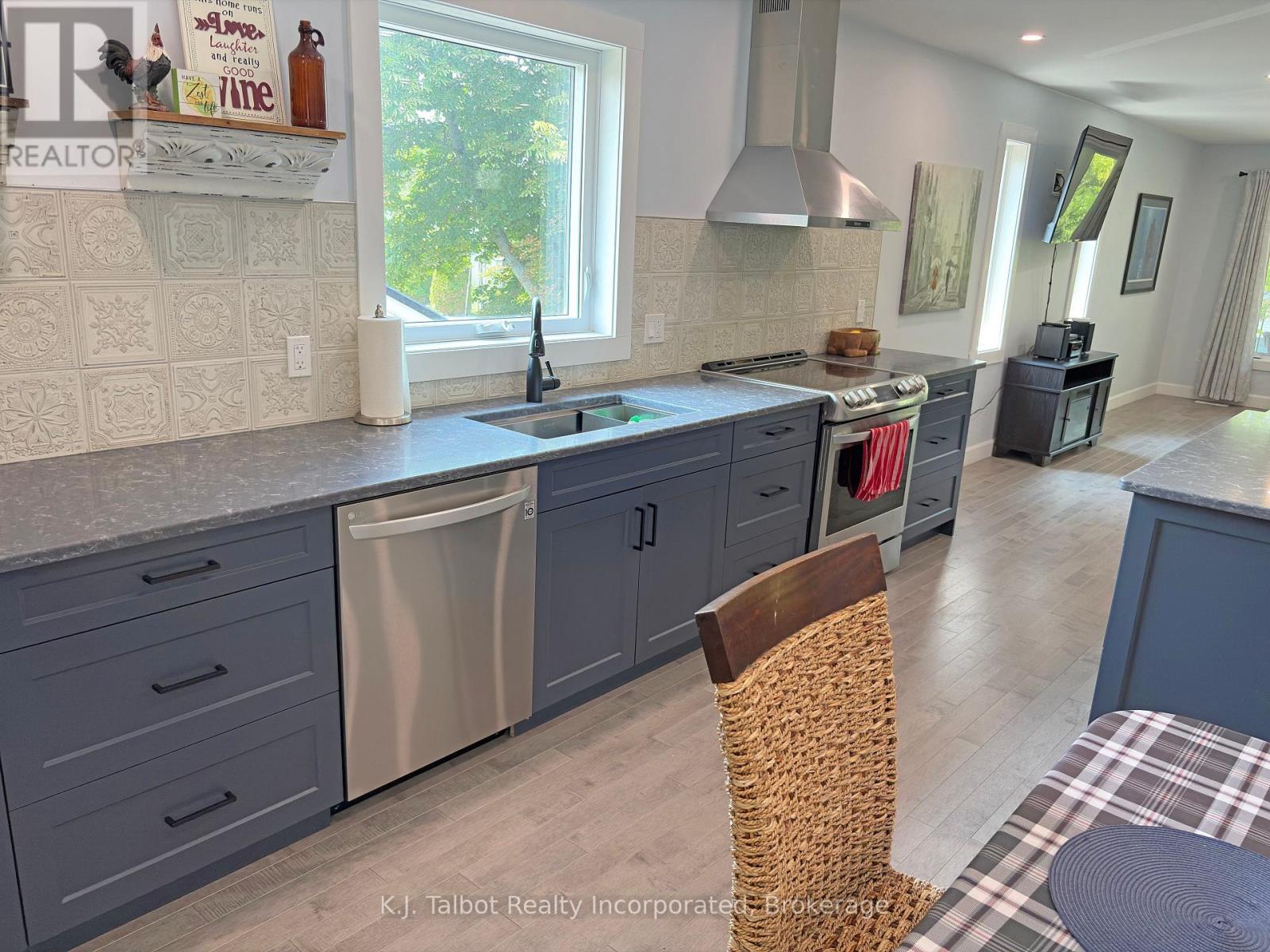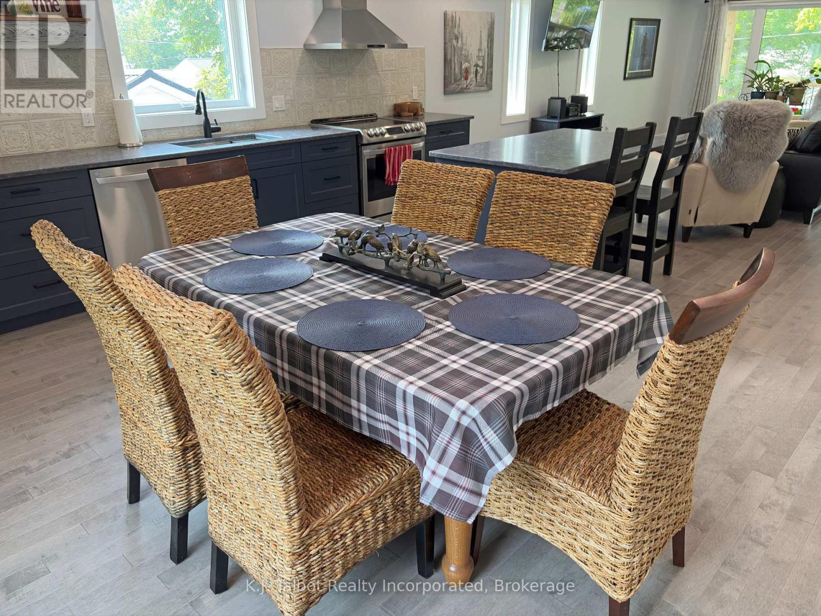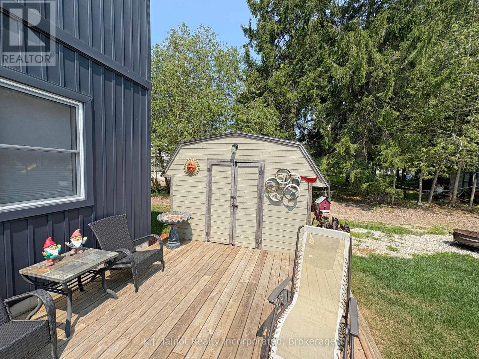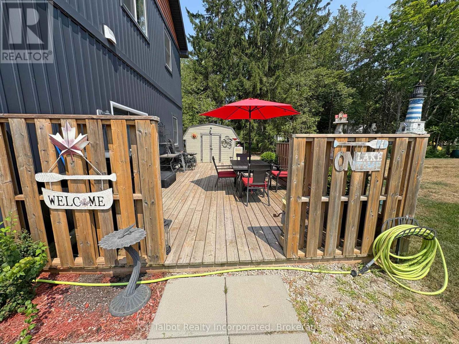 Presenting an impressive lakeside property along the beautiful shores of Lake Huron. This uniquely designed 2021 slab-on-grade, two-story home features an oversized two-car garage and is ideally situated just minutes south of Goderich in the established Lakeside community of Bluewater Beach. Residents will appreciate the short walking distance to beach access, a playground, a pavilion, and nearby trails, perfect for outdoor enthusiasts. This distinct residence, offering two plus one bedrooms and two bathrooms, is ideal for those seeking an unconventional and comfortable living experience. The upper level boasts a stunning open-concept kitchen, dining, and living room, showcasing a large kitchen island with gleaming quartz countertops and a generous walk-in pantry. The main level exhibits an urban-style vibe with a family room, utility area, a 3-piece bathroom, and a potential third bedroom or office space. The home is thoughtfully designed with two decks to enhance comfort and enjoyment of the outdoor space. Notably, the upper front deck includes ceiling fans that help circulate air, maintaining a cool environment on warm days and deterring insects, thus creating a versatile and enjoyable outdoor area for relaxation and entertainment. Additional features include a seasonal lakeview, backyard shed, natural gas BBQ hook up, plenty of parking and central vac. This is a quality home with so much to offer, we encourage you not to miss out! (id:46441)
