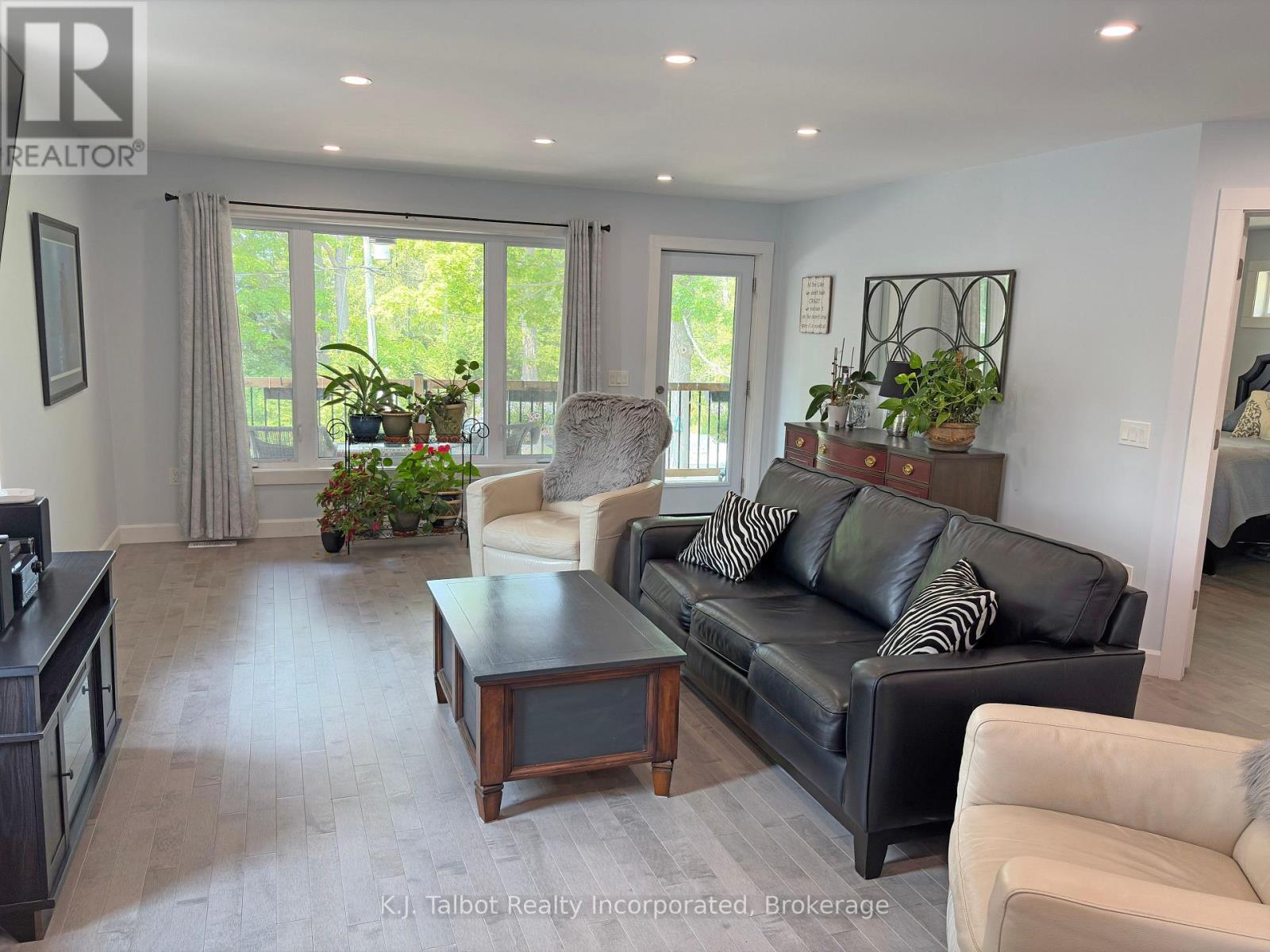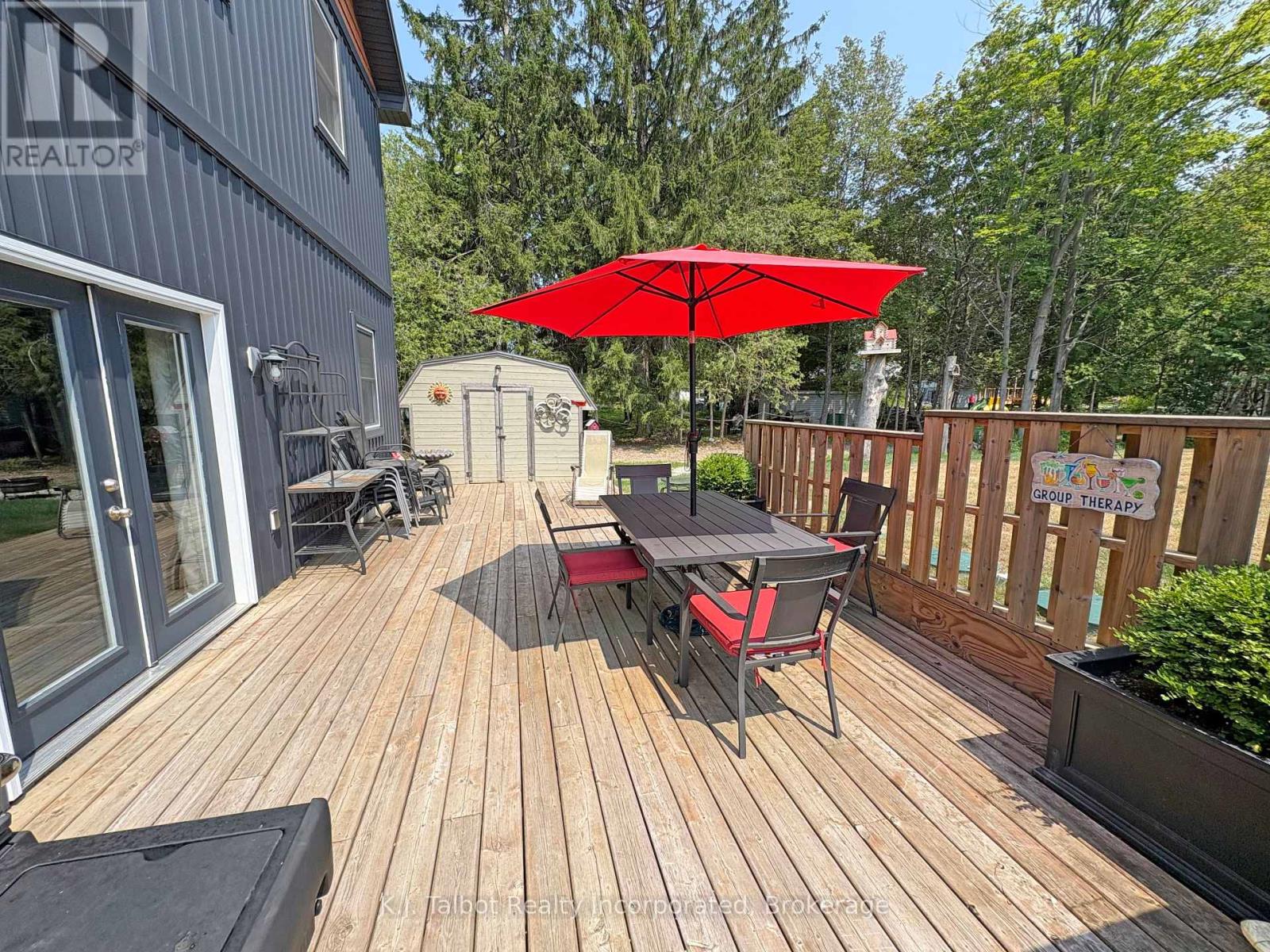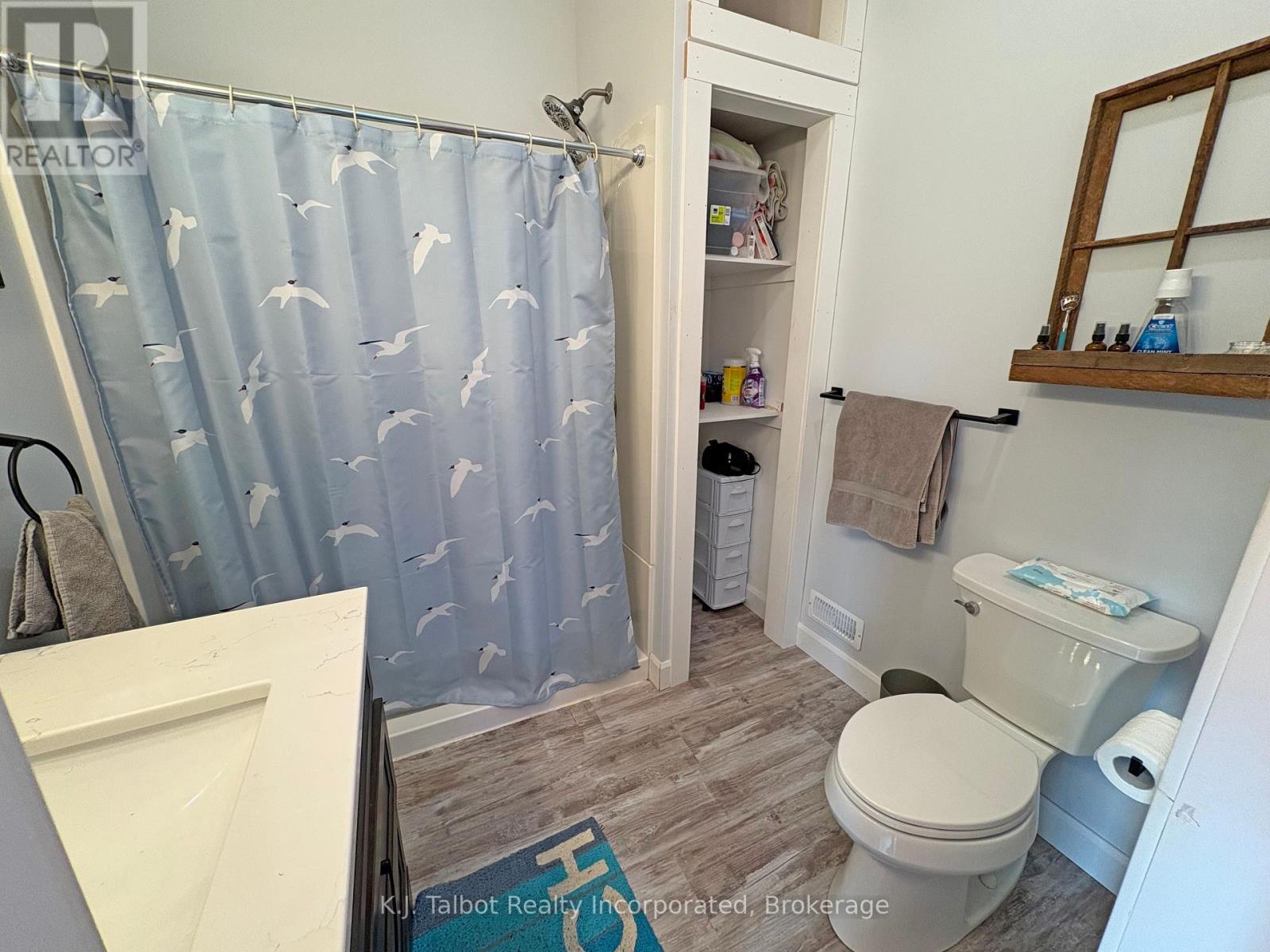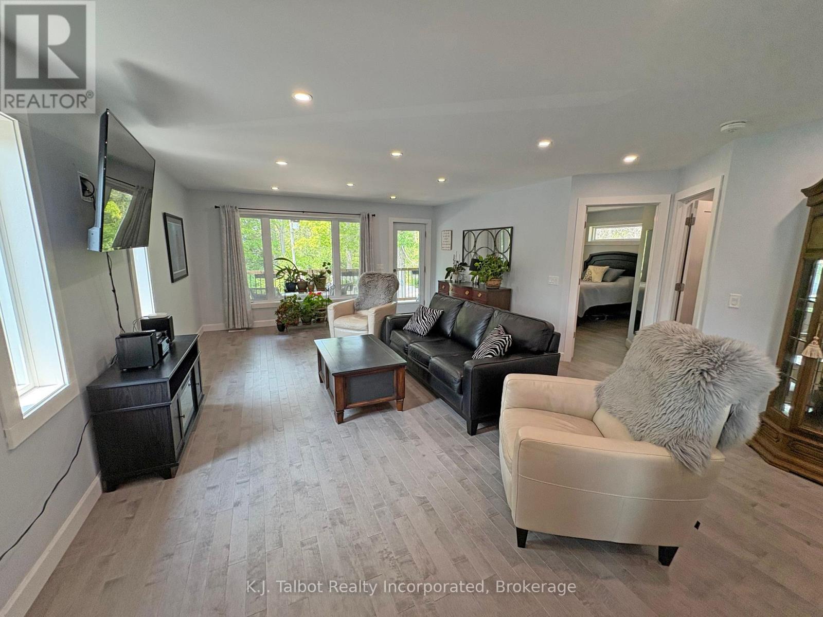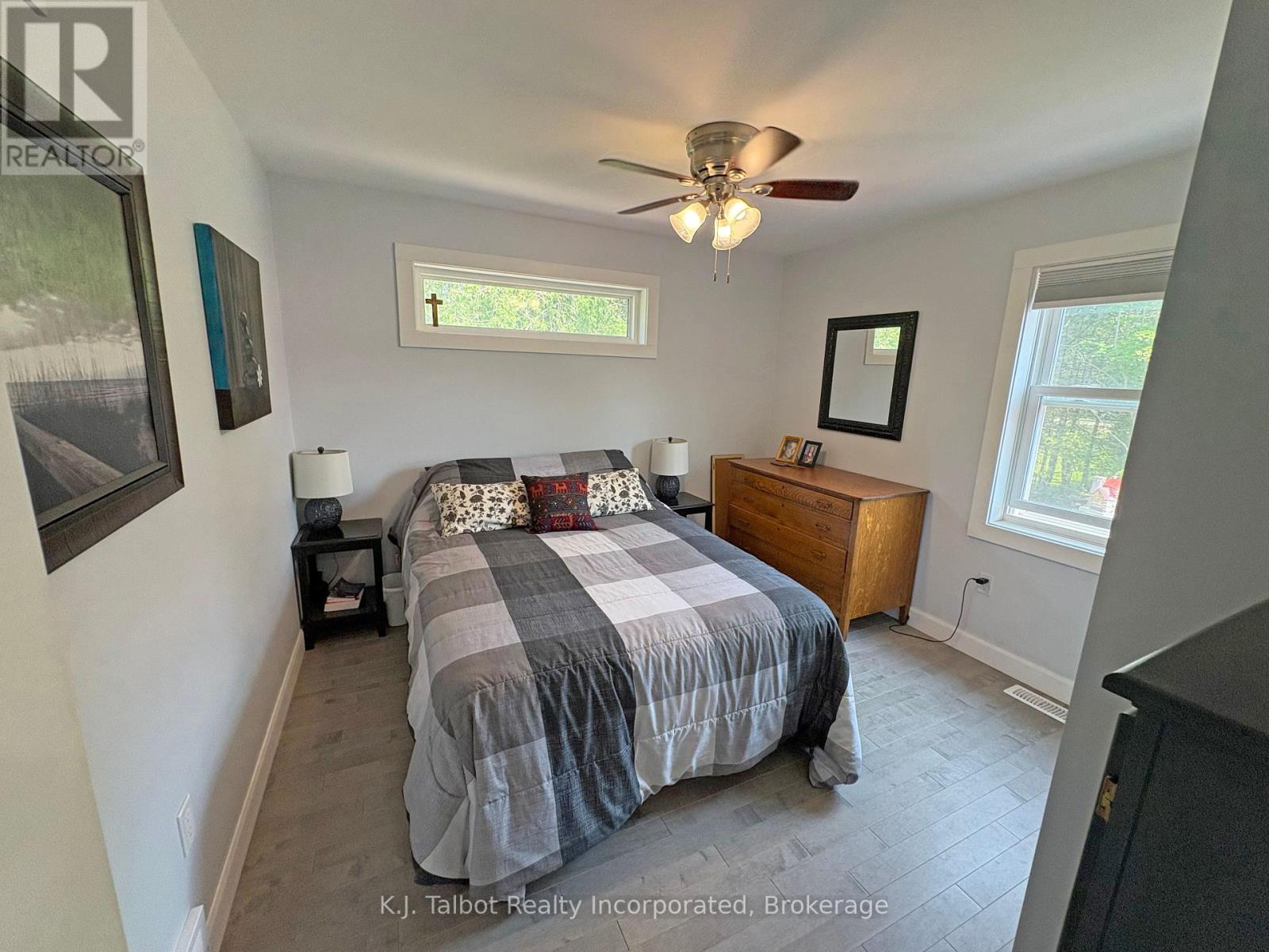 Presenting an impressive lakeside property along the beautiful shores of Lake Huron. This uniquely designed 2021 slab-on-grade, two-story home features an oversized two-car garage and is ideally situated just minutes south of Goderich in the established Lakeside community of Bluewater Beach. Residents will appreciate the short walking distance to beach access, a playground, a pavilion, and nearby trails, perfect for outdoor enthusiasts. This distinct residence, offering two plus one bedrooms and two bathrooms, is ideal for those seeking an unconventional and comfortable living experience. The upper level boasts a stunning open-concept kitchen, dining, and living room, showcasing a large kitchen island with gleaming quartz countertops and a generous walk-in pantry. The main level exhibits an urban-style vibe with a family room, utility area, a 3-piece bathroom, and a potential third bedroom or office space. The home is thoughtfully designed with two decks to enhance comfort and enjoyment of the outdoor space. Notably, the upper front deck includes ceiling fans that help circulate air, maintaining a cool environment on warm days and deterring insects, thus creating a versatile and enjoyable outdoor area for relaxation and entertainment. Additional features include a seasonal lakeview, backyard shed, natural gas BBQ hook up, plenty of parking and central vac. This is a quality home with so much to offer, we encourage you not to miss out! (id:46441)