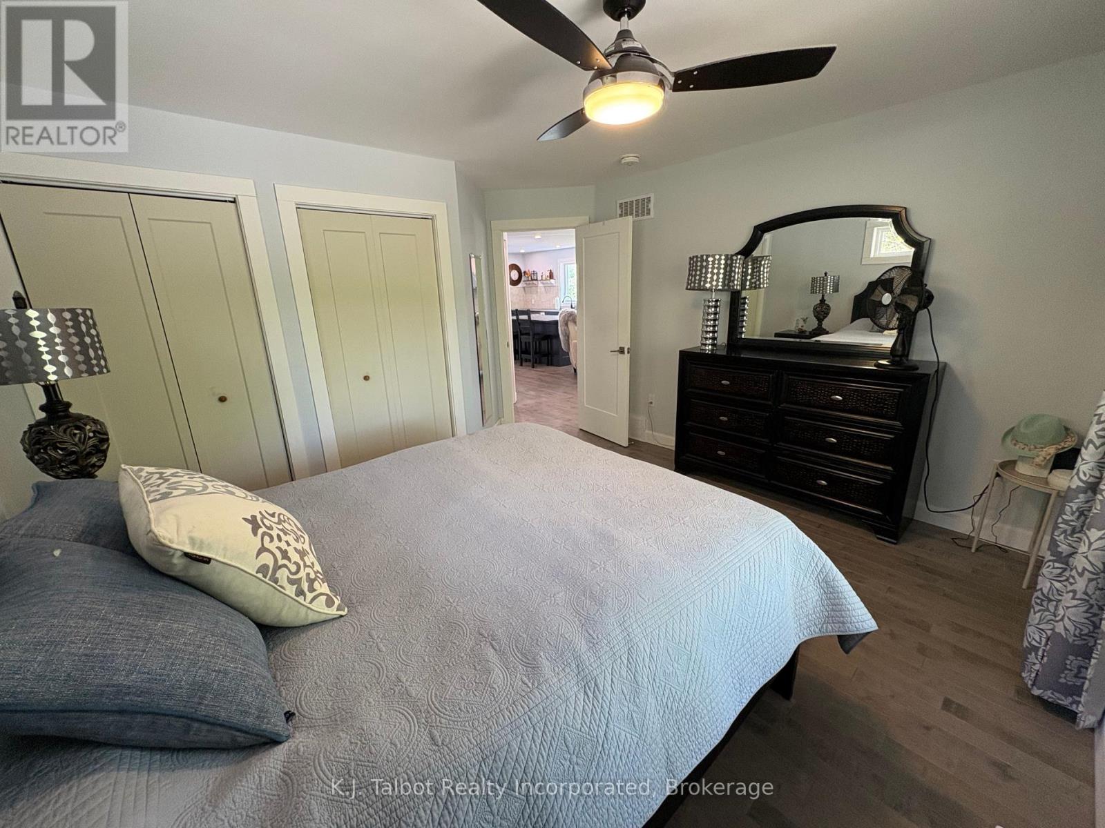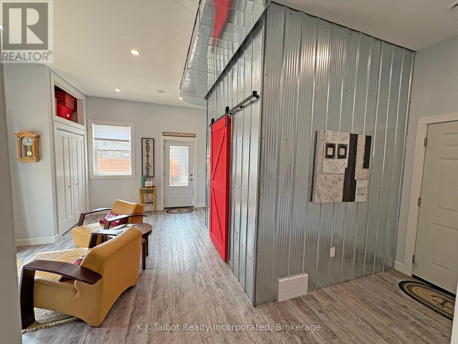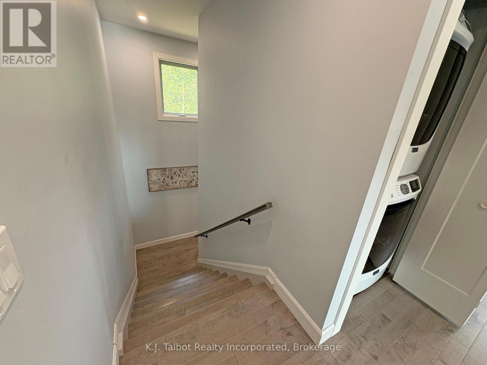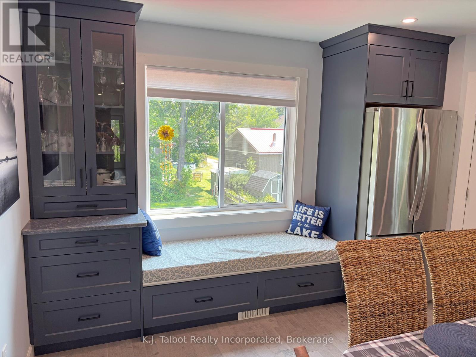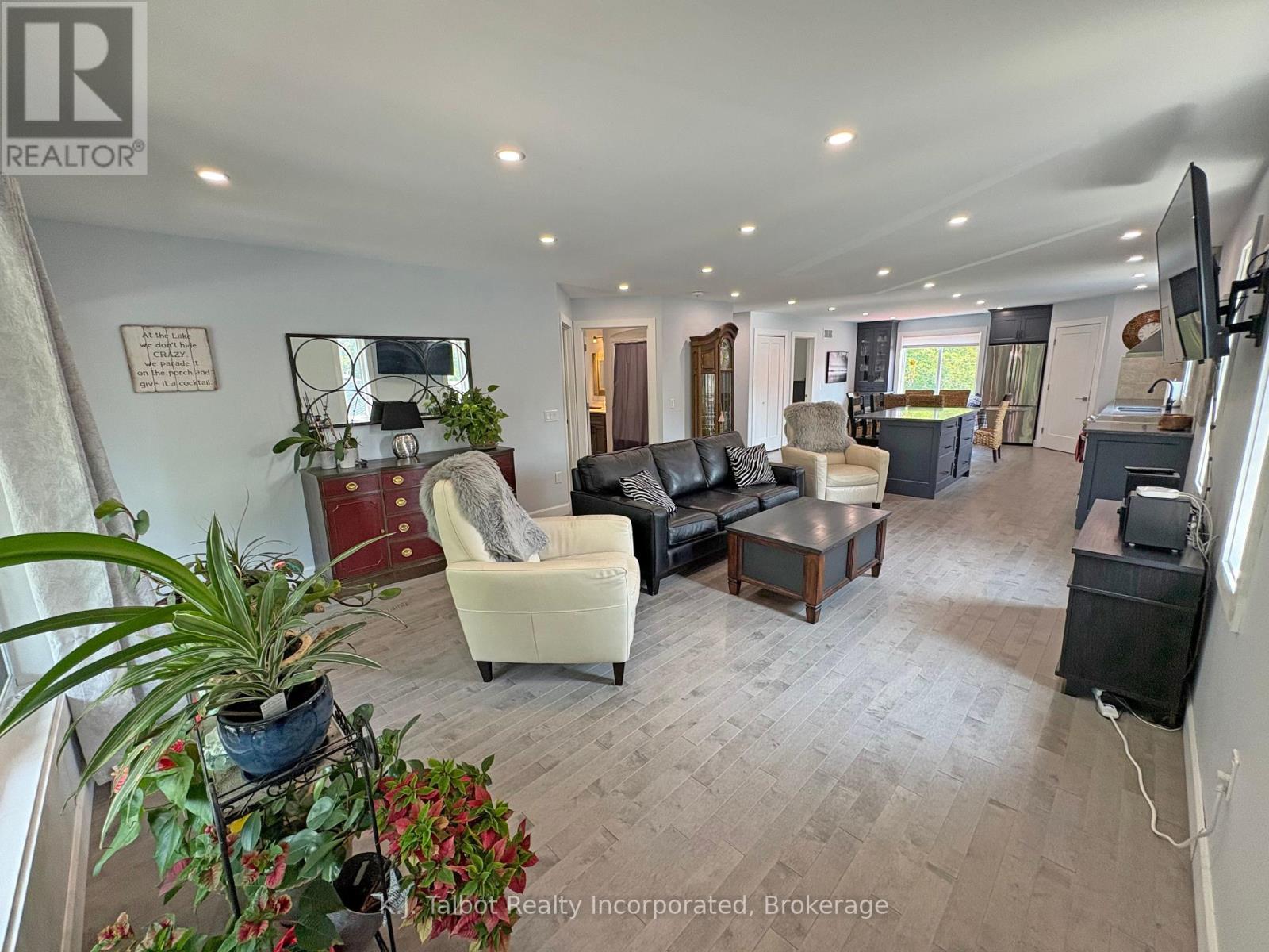 Presenting an impressive lakeside property along the beautiful shores of Lake Huron. This uniquely designed 2021 slab-on-grade, two-story home features an oversized two-car garage and is ideally situated just minutes south of Goderich in the established Lakeside community of Bluewater Beach. Residents will appreciate the short walking distance to beach access, a playground, a pavilion, and nearby trails, perfect for outdoor enthusiasts. This distinct residence, offering two plus one bedrooms and two bathrooms, is ideal for those seeking an unconventional and comfortable living experience. The upper level boasts a stunning open-concept kitchen, dining, and living room, showcasing a large kitchen island with gleaming quartz countertops and a generous walk-in pantry. The main level exhibits an urban-style vibe with a family room, utility area, a 3-piece bathroom, and a potential third bedroom or office space. The home is thoughtfully designed with two decks to enhance comfort and enjoyment of the outdoor space. Notably, the upper front deck includes ceiling fans that help circulate air, maintaining a cool environment on warm days and deterring insects, thus creating a versatile and enjoyable outdoor area for relaxation and entertainment. Additional features include a seasonal lakeview, backyard shed, natural gas BBQ hook up, plenty of parking and central vac. This is a quality home with so much to offer, we encourage you not to miss out! (id:46441)