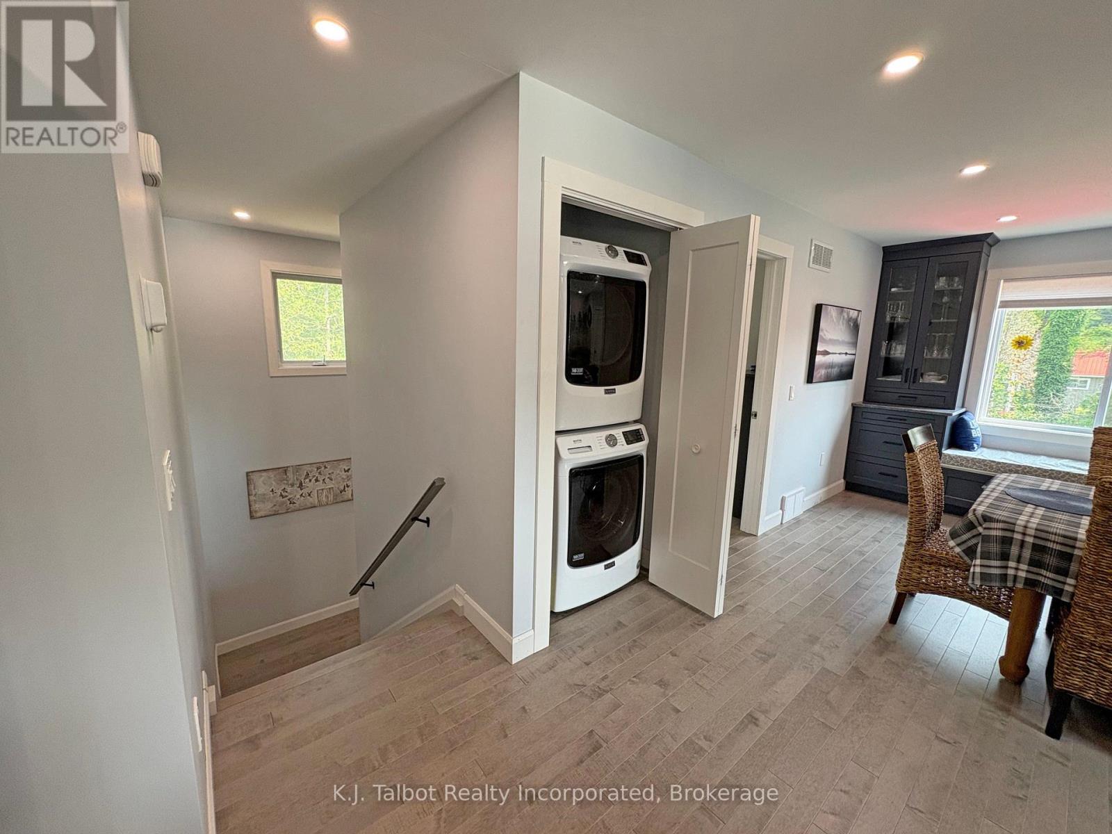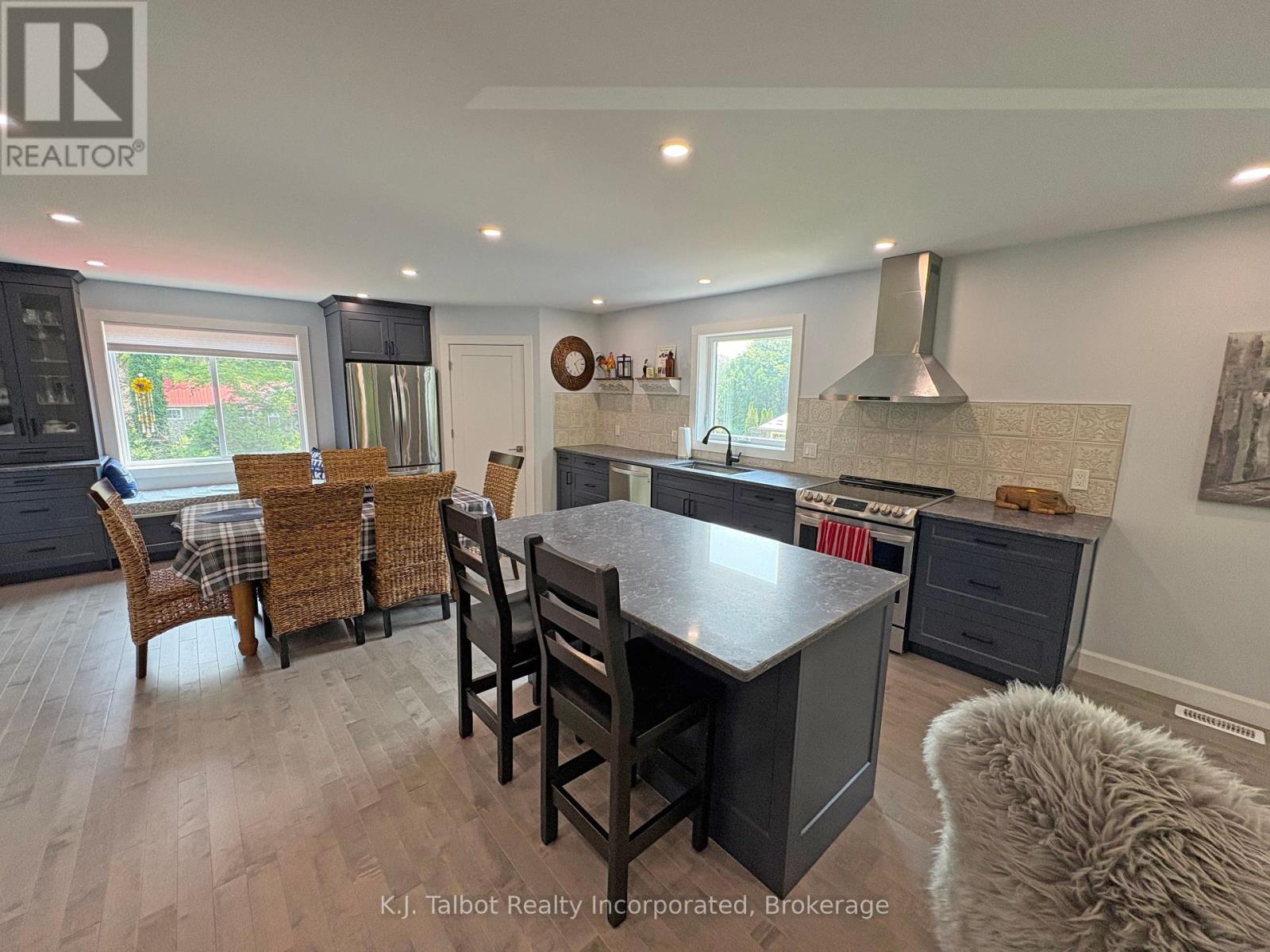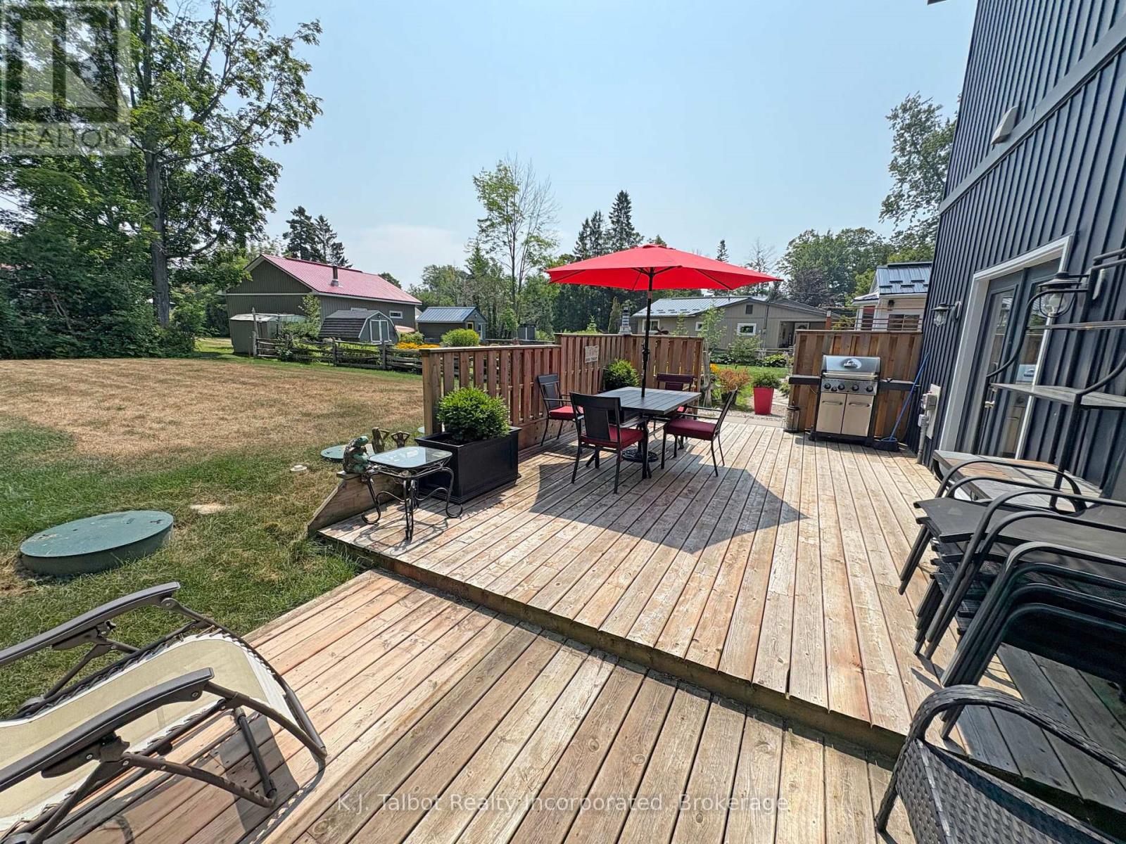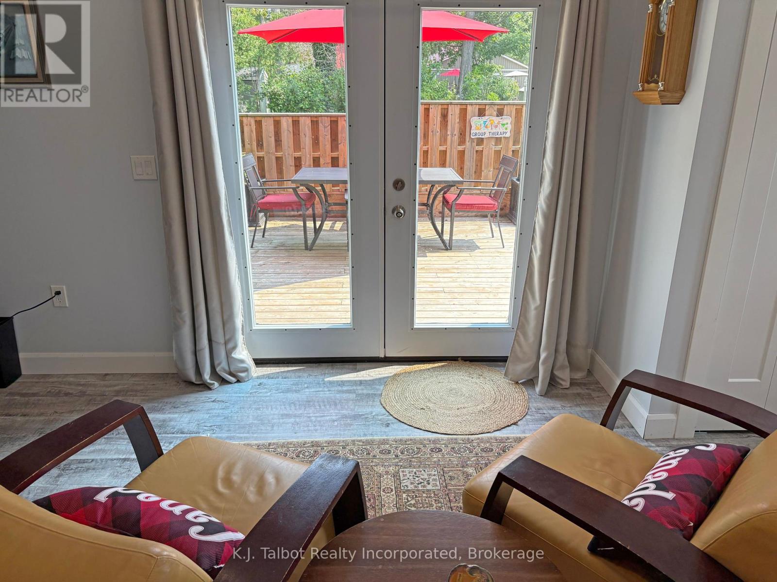Presenting an impressive lakeside property along the beautiful shores of Lake Huron. This uniquely designed 2021 slab-on-grade, two-story home features an oversized two-car garage and is ideally situated just minutes south of Goderich in the established Lakeside community of Bluewater Beach. Residents will appreciate the short walking distance to beach access, a playground, a pavilion, and nearby trails, perfect for outdoor enthusiasts. This distinct residence, offering two plus one bedrooms and two bathrooms, is ideal for those seeking an unconventional and comfortable living experience. The upper level boasts a stunning open-concept kitchen, dining, and living room, showcasing a large kitchen island with gleaming quartz countertops and a generous walk-in pantry. The main level exhibits an urban-style vibe with a family room, utility area, a 3-piece bathroom, and a potential third bedroom or office space. The home is thoughtfully designed with two decks to enhance comfort and enjoyment of the outdoor space. Notably, the upper front deck includes ceiling fans that help circulate air, maintaining a cool environment on warm days and deterring insects, thus creating a versatile and enjoyable outdoor area for relaxation and entertainment. Additional features include a seasonal lakeview, backyard shed, natural gas BBQ hook up, plenty of parking and central vac. This is a quality home with so much to offer, we encourage you not to miss out! (id:46441)