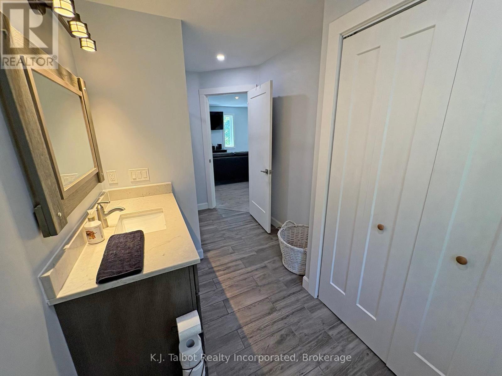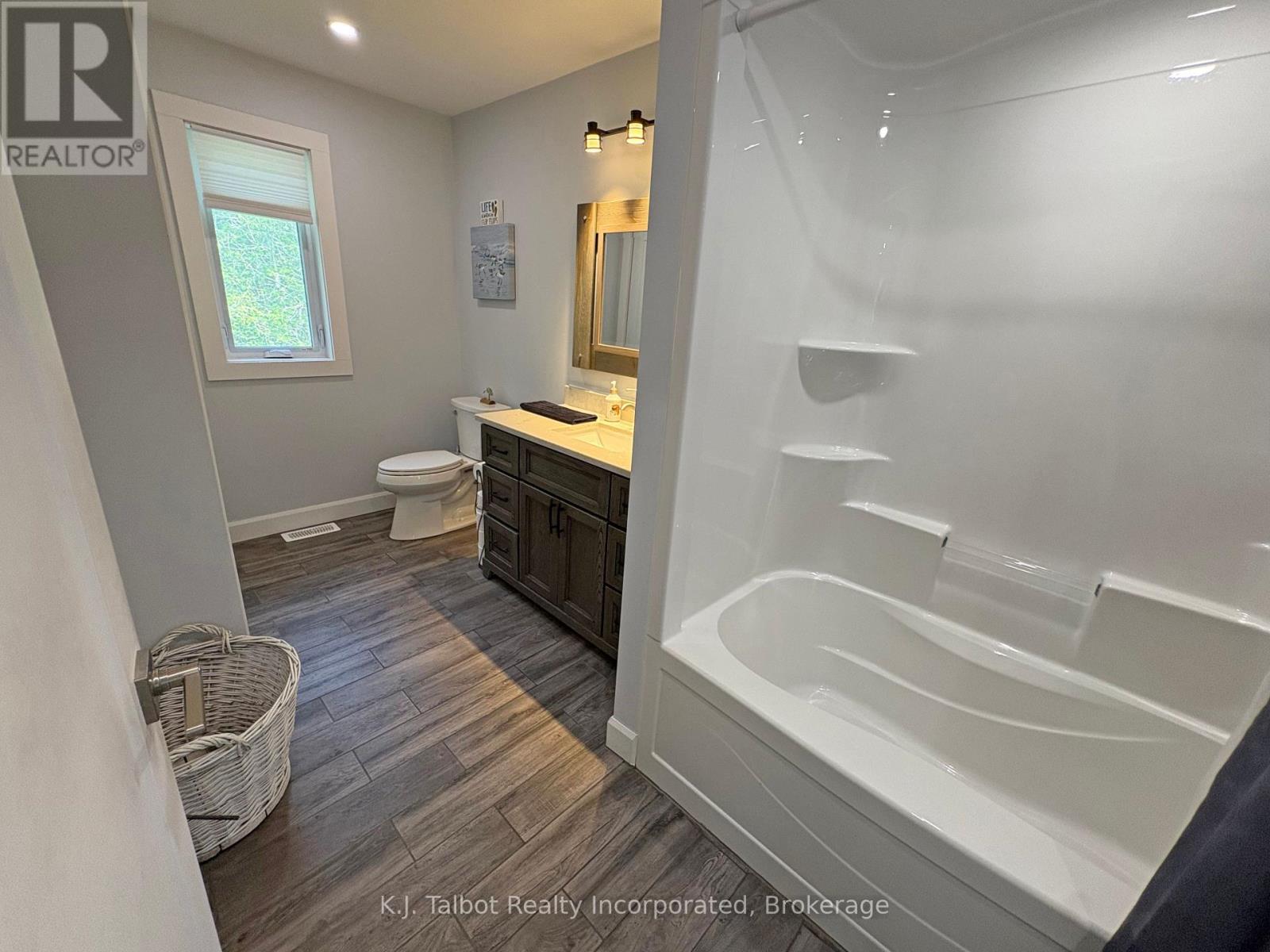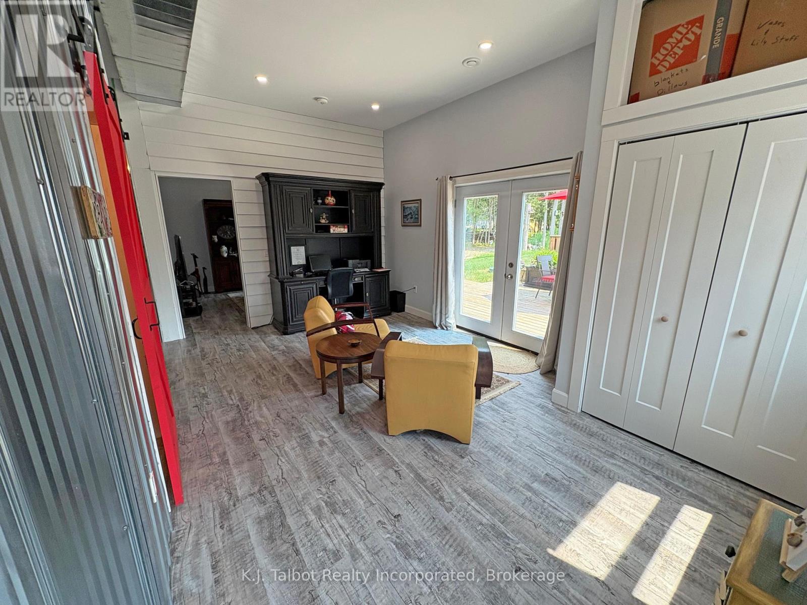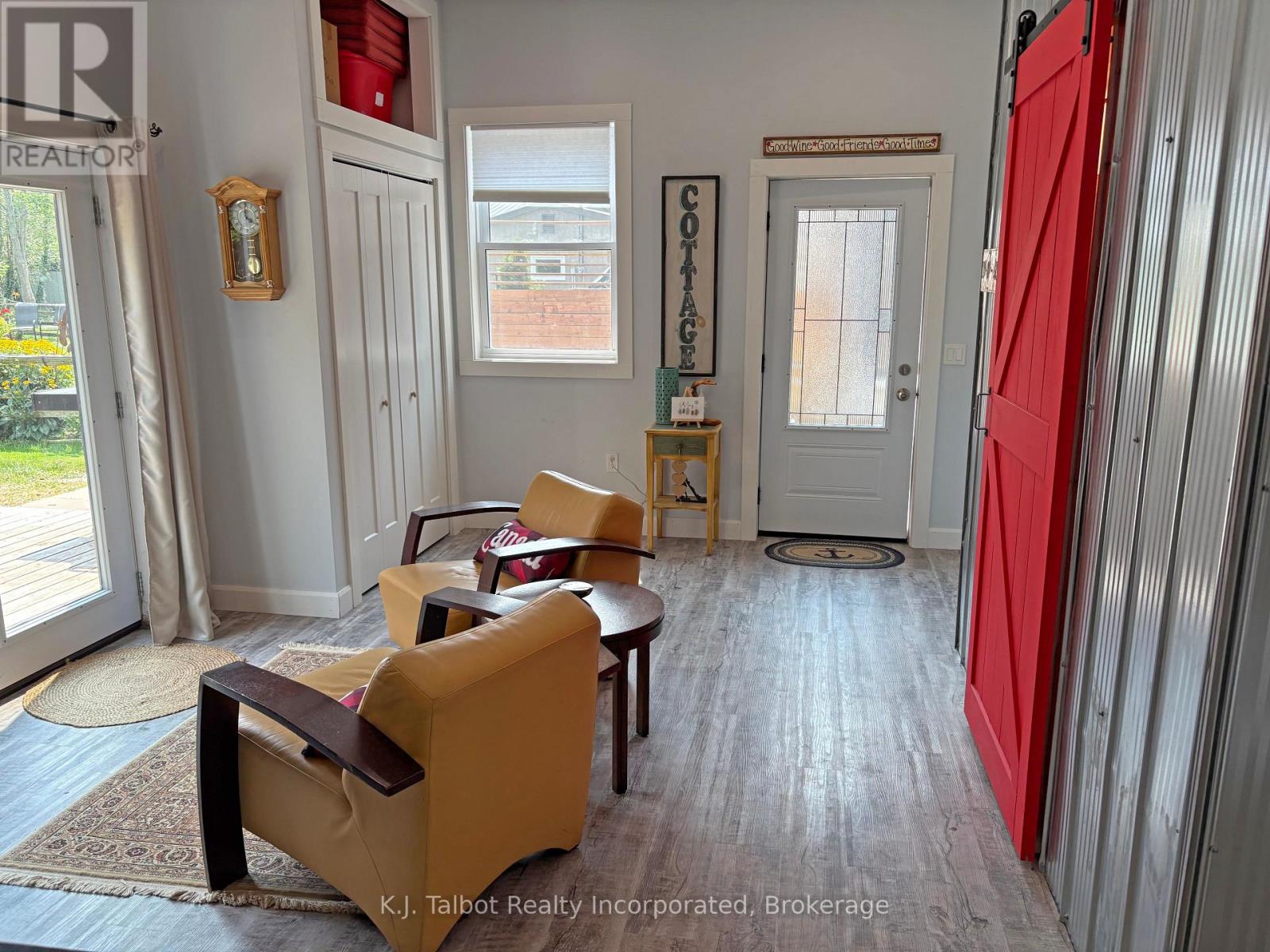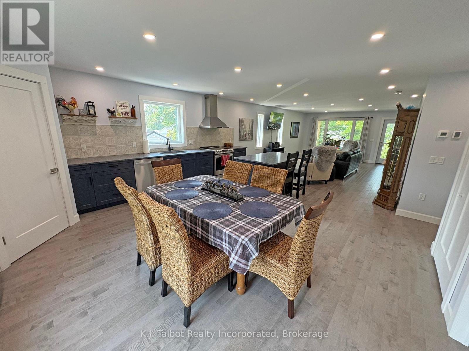 Presenting an impressive lakeside property along the beautiful shores of Lake Huron. This uniquely designed 2021 slab-on-grade, two-story home features an oversized two-car garage and is ideally situated just minutes south of Goderich in the established Lakeside community of Bluewater Beach. Residents will appreciate the short walking distance to beach access, a playground, a pavilion, and nearby trails, perfect for outdoor enthusiasts. This distinct residence, offering two plus one bedrooms and two bathrooms, is ideal for those seeking an unconventional and comfortable living experience. The upper level boasts a stunning open-concept kitchen, dining, and living room, showcasing a large kitchen island with gleaming quartz countertops and a generous walk-in pantry. The main level exhibits an urban-style vibe with a family room, utility area, a 3-piece bathroom, and a potential third bedroom or office space. The home is thoughtfully designed with two decks to enhance comfort and enjoyment of the outdoor space. Notably, the upper front deck includes ceiling fans that help circulate air, maintaining a cool environment on warm days and deterring insects, thus creating a versatile and enjoyable outdoor area for relaxation and entertainment. Additional features include a seasonal lakeview, backyard shed, natural gas BBQ hook up, plenty of parking and central vac. This is a quality home with so much to offer, we encourage you not to miss out! (id:46441)