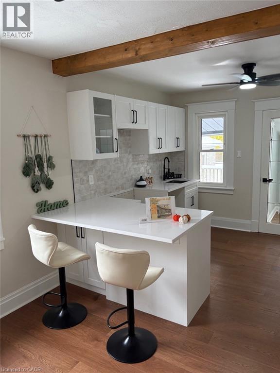 Welcome to a fully restored, carefully updated character home on a quiet one-way street in a family-minded neighbourhood. From the lifetime roof and refreshed exterior to the newer windows, every level has been improved with longevity and style in mind. Offering over 1,500 sq. ft. of bright, open-concept space, this 3+1 bedroom, 2-bath property balances classic charm with modern comforts. The main floor showcases exposed wood beams and brand-new engineered hardwood, setting a warm, inviting tone. An airy layout flows into a newly finished kitchen featuring crisp white quartz counters, upgraded fixtures, and generous prep and gathering space—ideal for everyday living and entertaining. Both full bathrooms have been completely redone with sleek tile and dual shower panel systems for a touch of luxury. All three bedrooms are located on the main level—great for young families or anyone seeking convenient single-level living. The fully finished lower level adds versatility with a fourth bedroom and a large recreation room—perfect as a teen retreat, home gym, or media lounge. A spacious laundry room overlooks the yard and connects to a large, practical rear deck for relaxed evenings or weekend get-togethers. Set on a generous lot and moments from shopping, schools, parks, and transit, this move-in-ready home delivers upgraded electrical, modern lighting, and cohesive, stylish finishes for peace of mind and lasting value. Listed at $509,900—an outstanding opportunity for first-time buyers or small families. Schedule your private showing today. (id:46441)