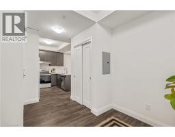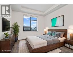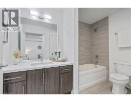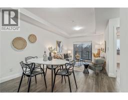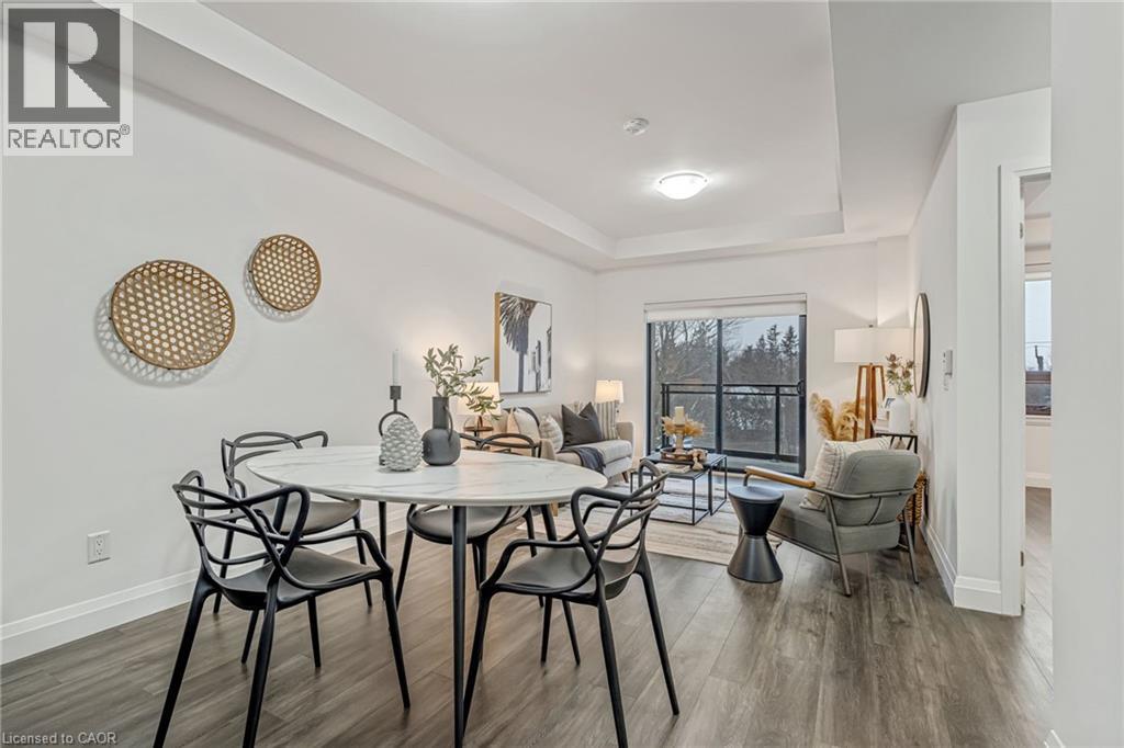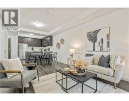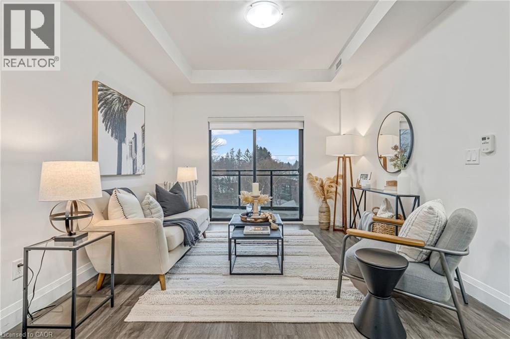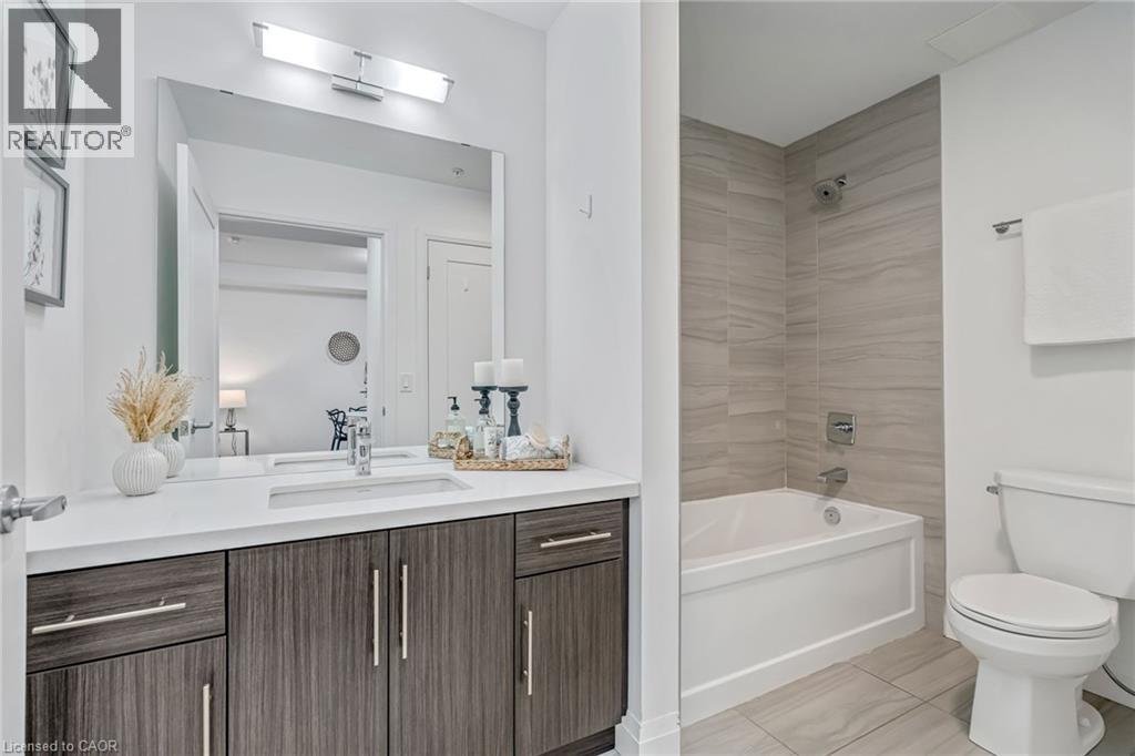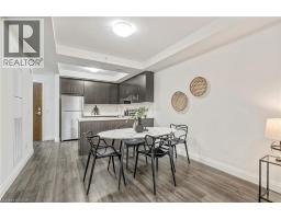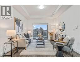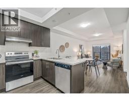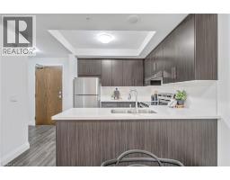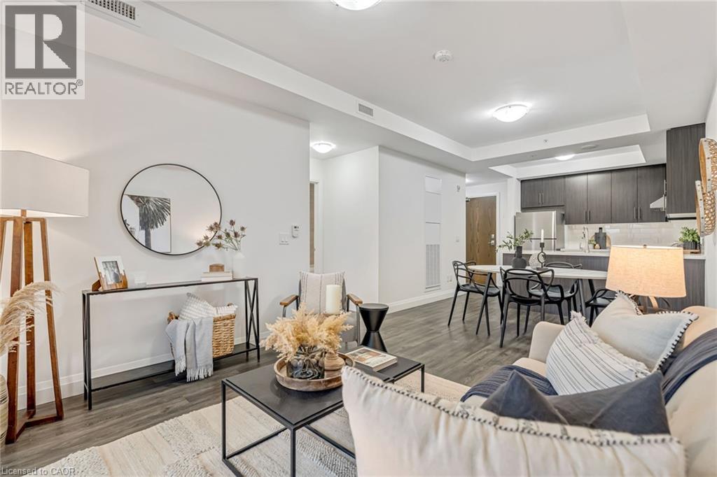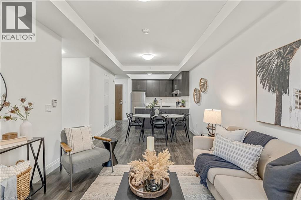 Welcome to this beautifully upgraded 700sqft, 1 bedroom + den condo in the highly desirable View Condos of Waterdown. Ideally located close to the downtown core, highways, trails, schools, shopping, and dining, this modern suite offers stainless steel appliances, a breakfast bar, and a spacious bedroom with ample closet space. Step out onto your private balcony and enjoy sweeping views of Hamilton Harbour, the Skyway, and Lake Ontario. Building amenities include concierge, fitness centre, bike room, pet wash station, rooftop terrace, media/party room, and EV charging. Includes parking (P1-19) and locker (#302). A fantastic opportunity for first-time buyers or investors alike. (id:46441)